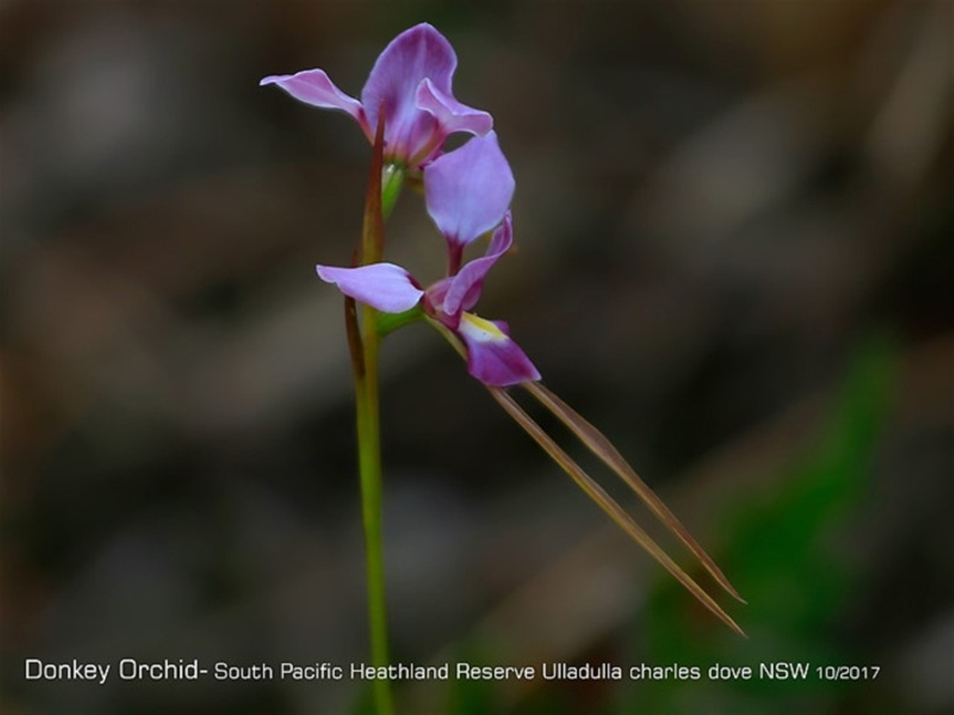 Diuris punkata, commonly known as donkey orchids, is a genus of more than sixty species of flowering plants in the orchid family, Orchidaceae and is endemic to Australia apart from one species endemic to Timor