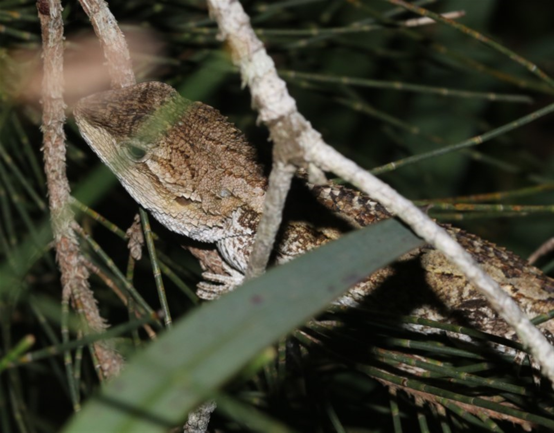 Very difficult to differentiate from image but seems to be more like the Jacky Dragon this link might help - http://reptilesofaustralia.com/lizards/agamids/cnobbi.htm#.XHtVibhxVPY Charles