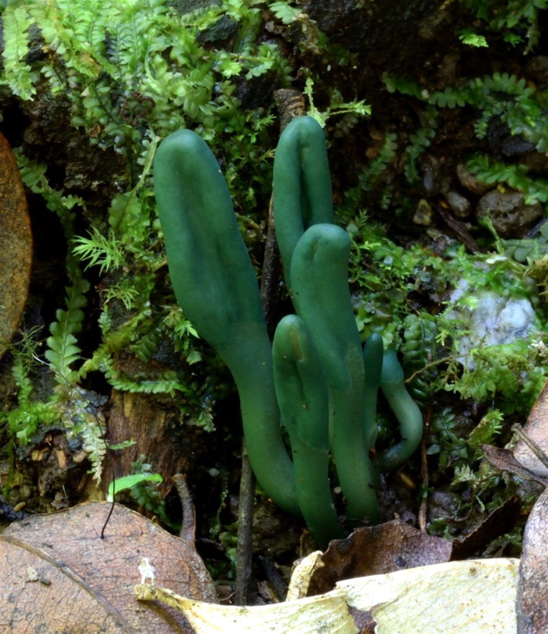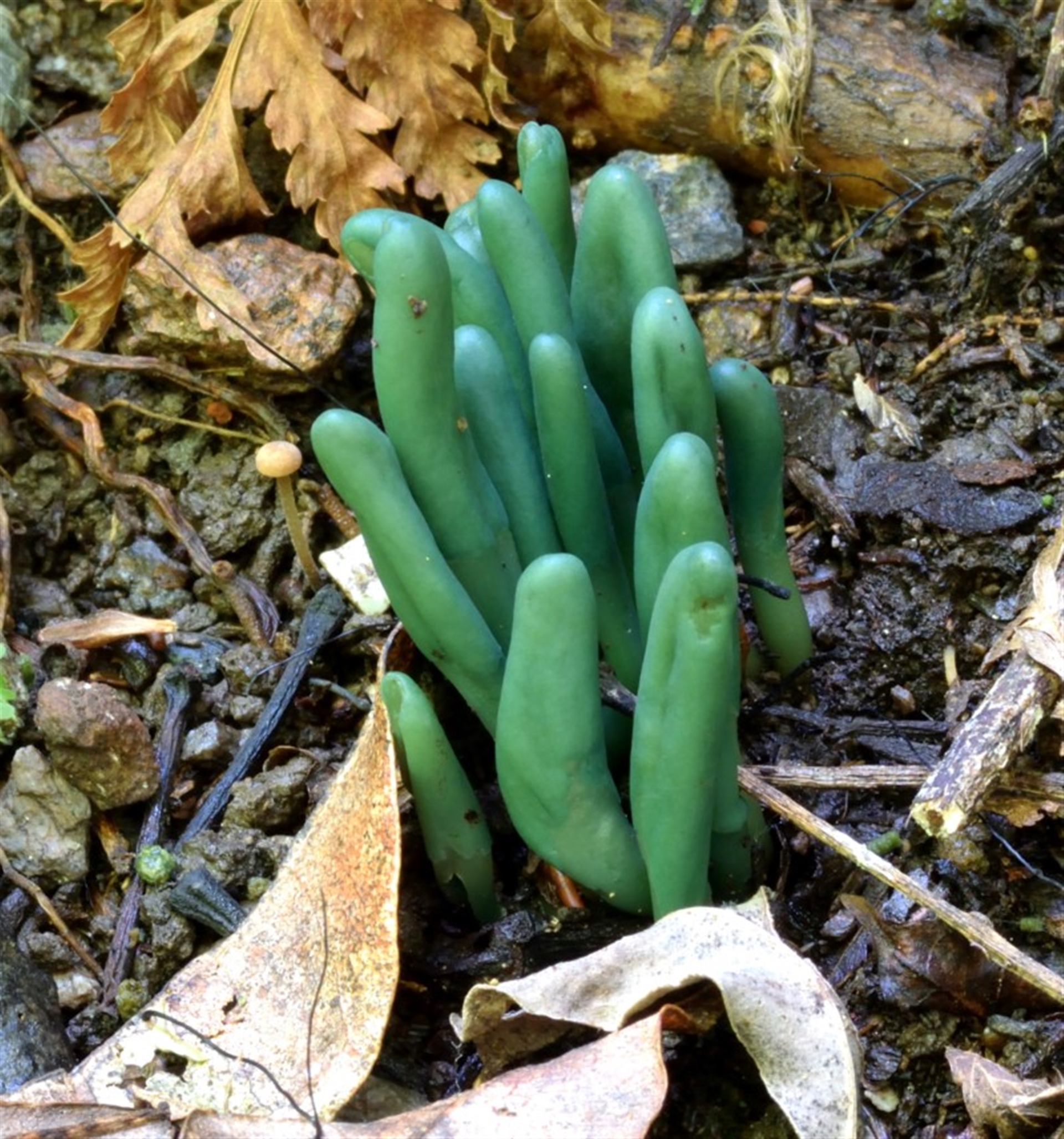 Olive green earth tongues are quite difficult to see as you wander through the forest.