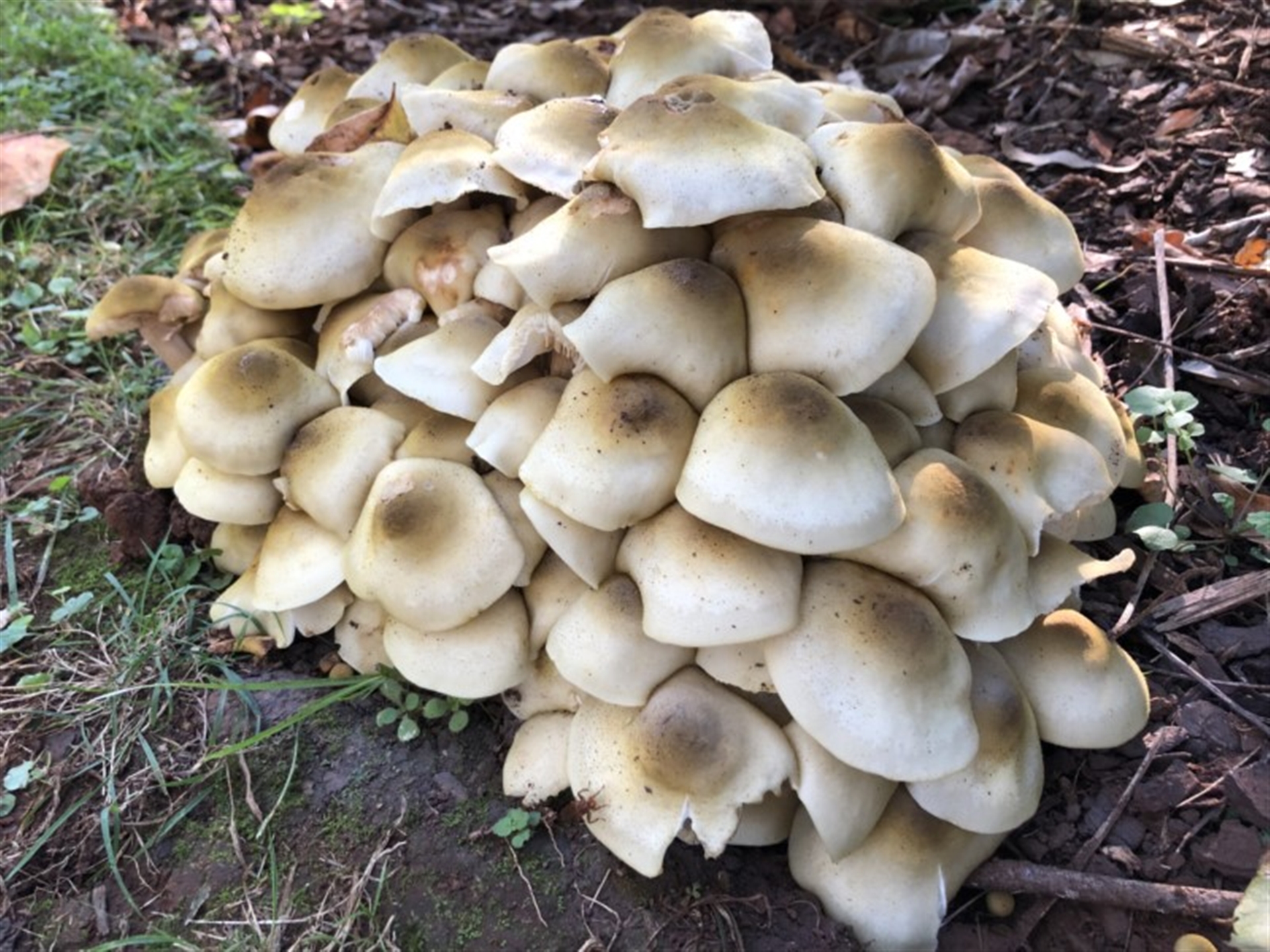 Having comeback and looked at this sighting I feel confident to confirm it as an Armillaria sp. though unfortunately still not able to put a species name to it. Good recording.