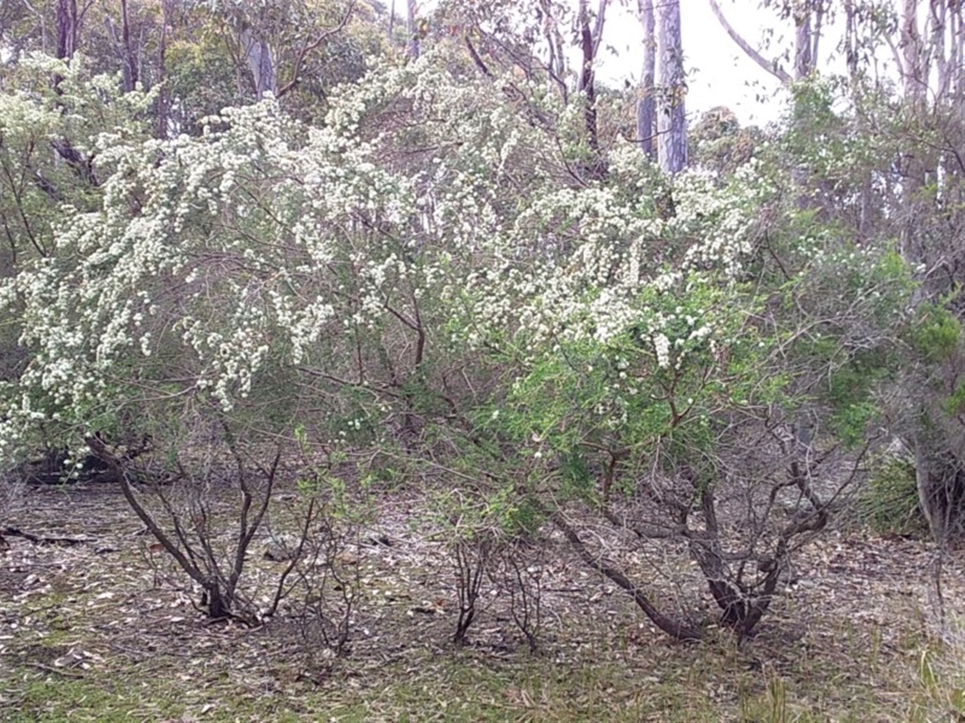 A lovely honey scent coming from the flowers. Perhaps Kunzea ambigua?