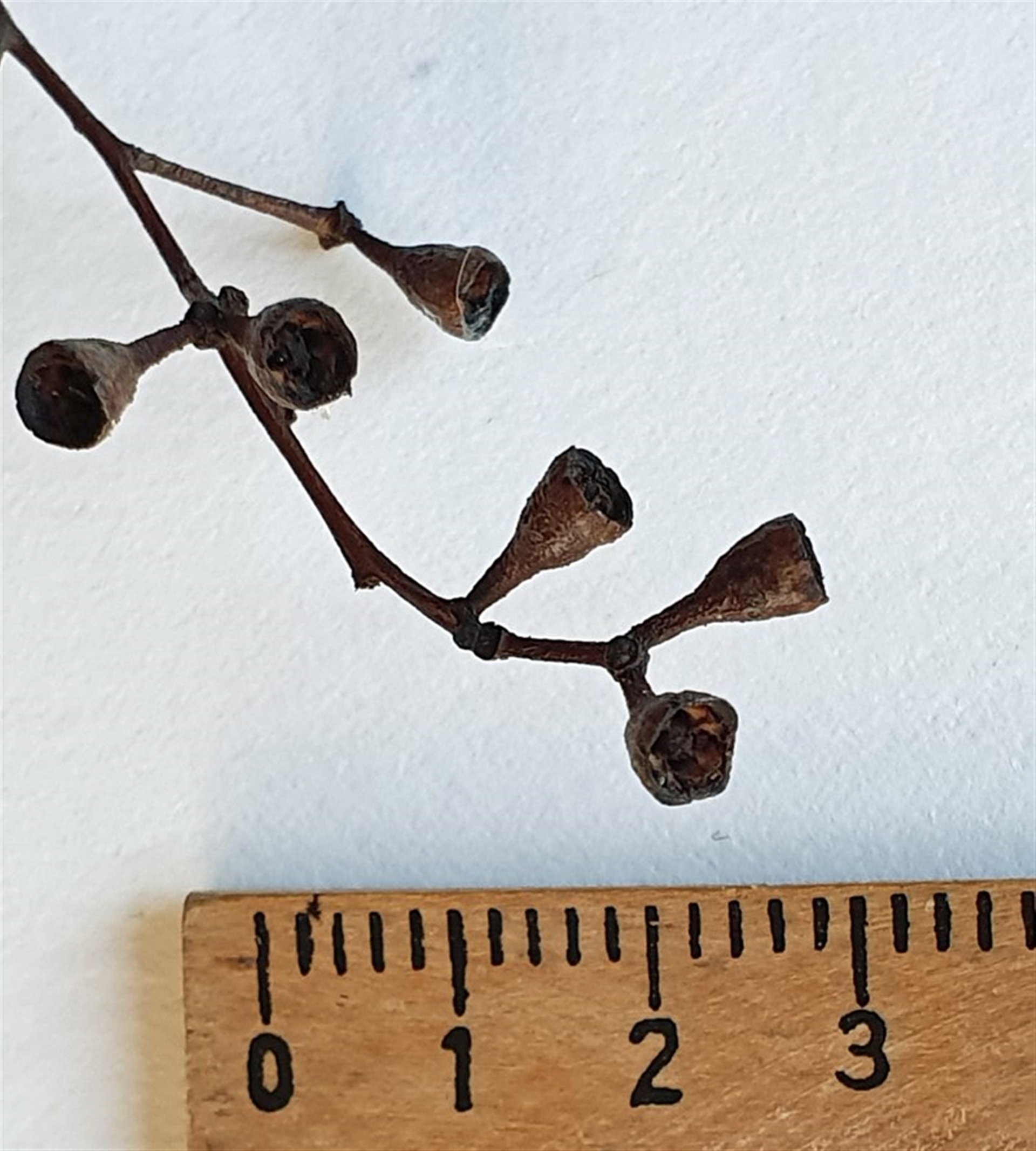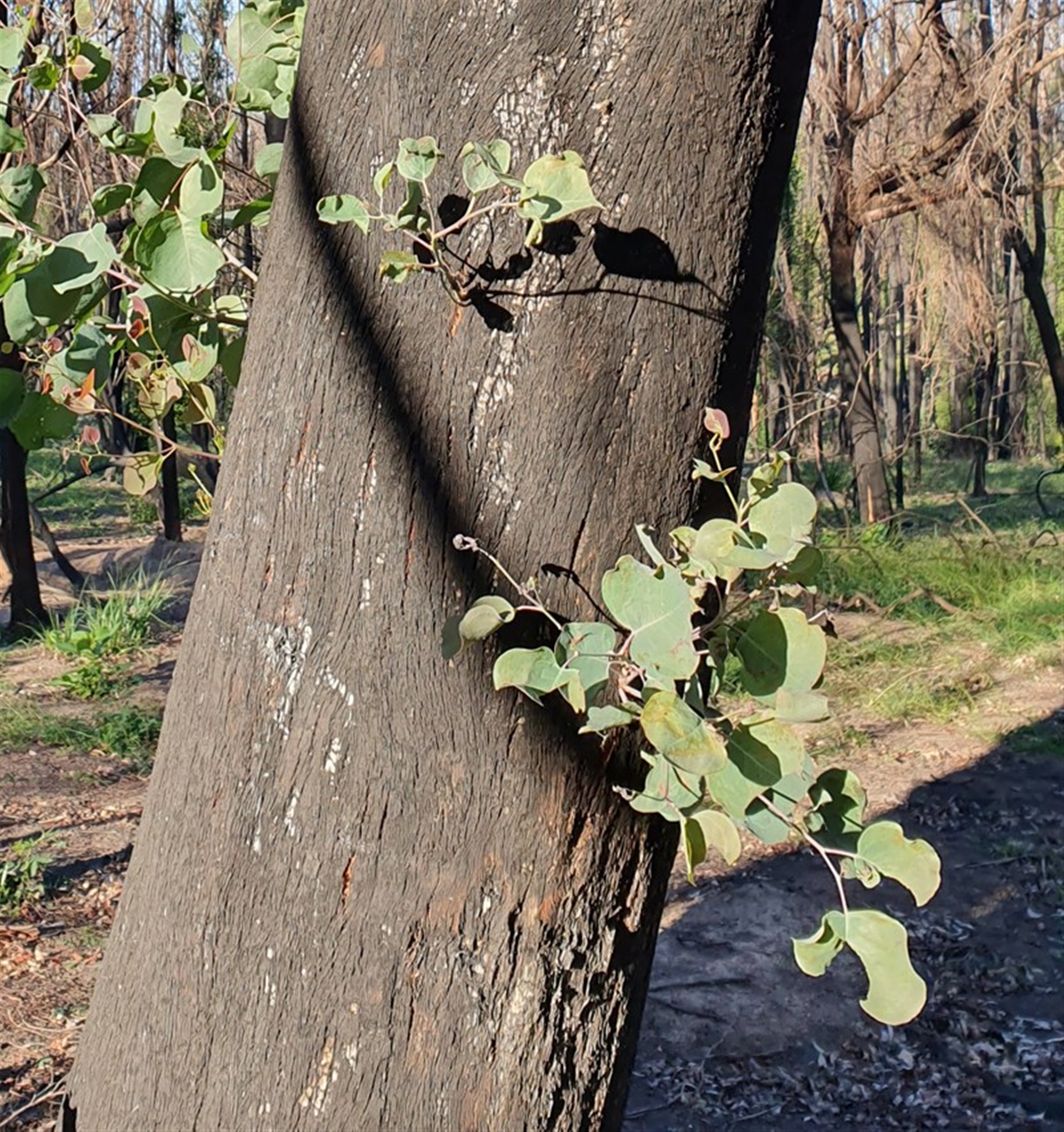 A group of gums regenerating after severe bushfire. The seed capsules were found under 2 of the trees, they have 4 valves.