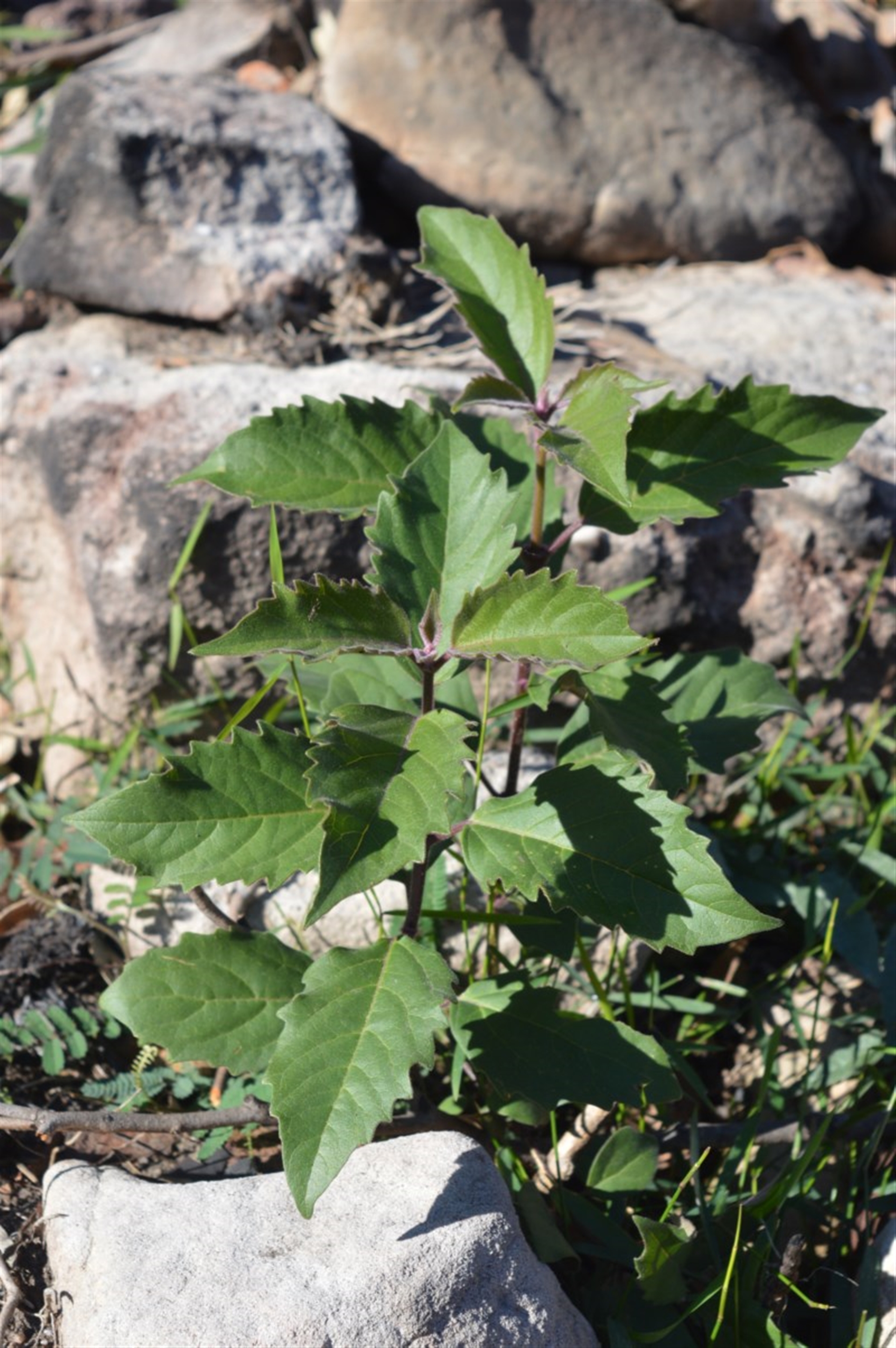 Post-fire regeneration, note serrate leaves of young plant.