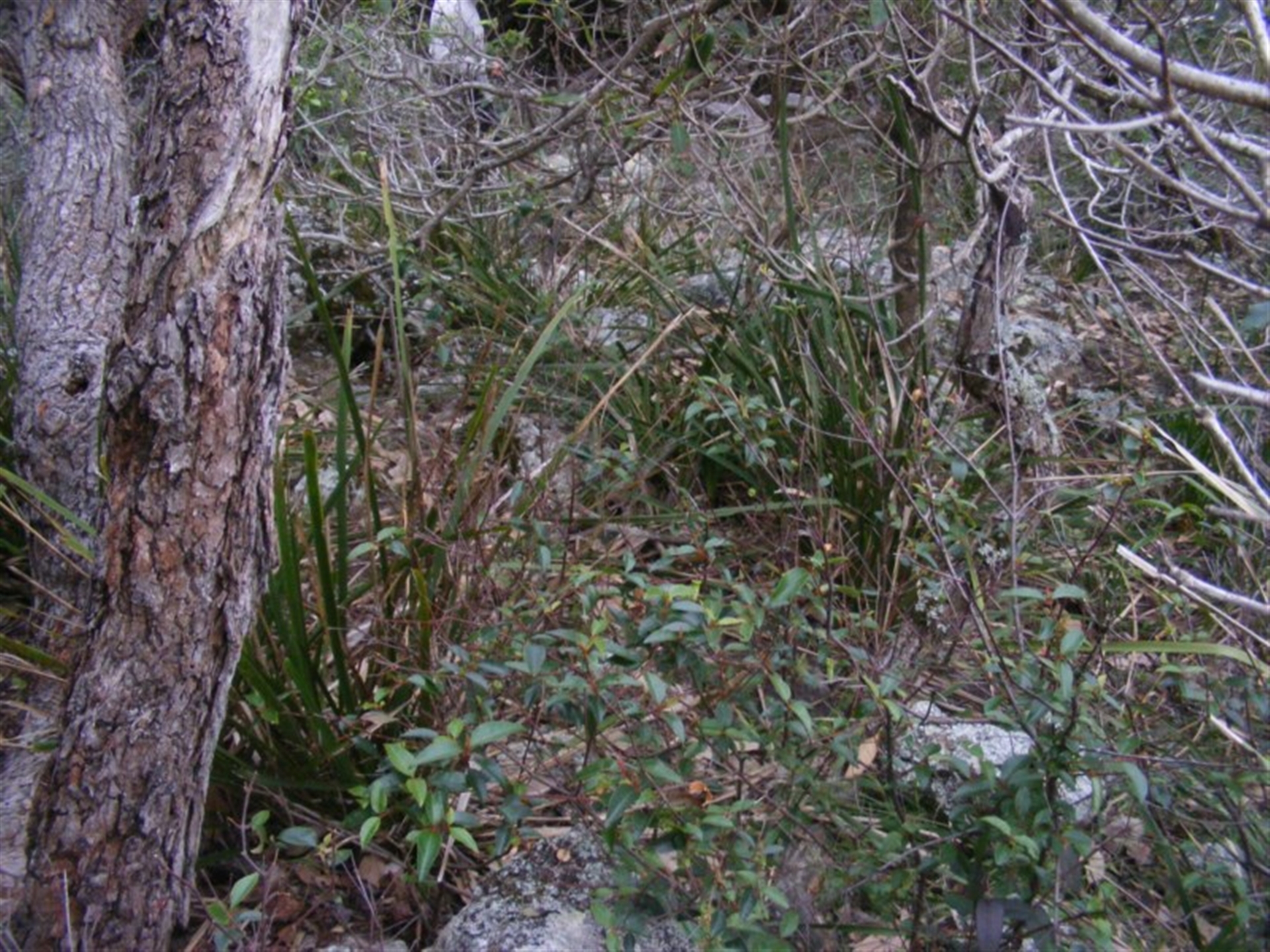 Plants on rocky metamorphic outcrop under Bangalay trees