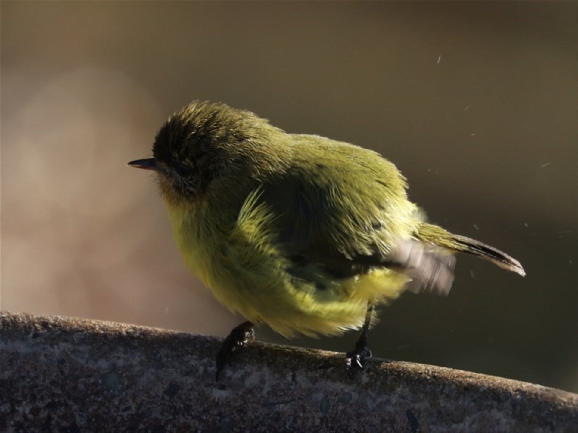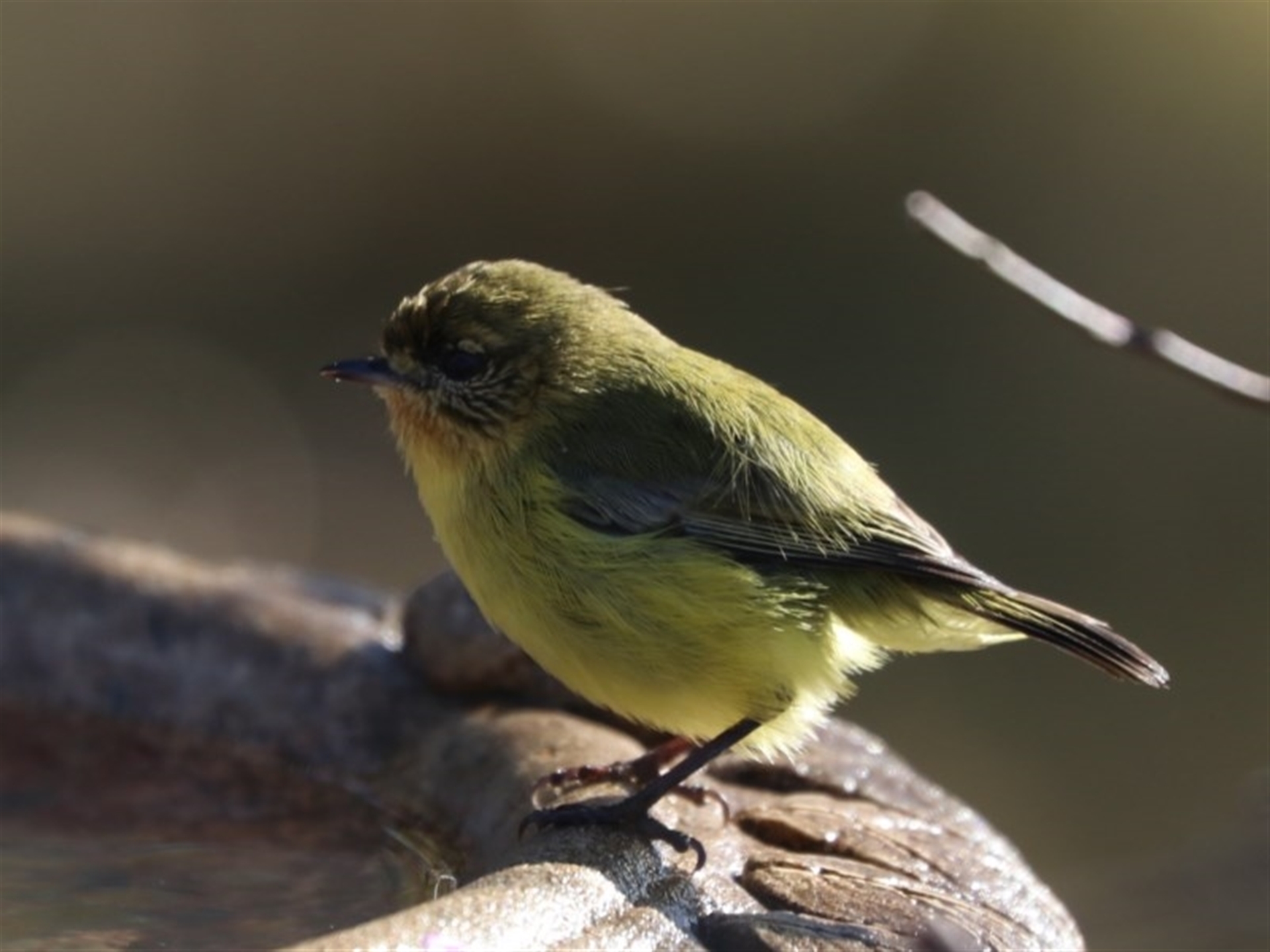 A single Yellow Thornbill getting a very brief opportunity at the bird bath before being driven off by the silvereyes and honeyeaters.