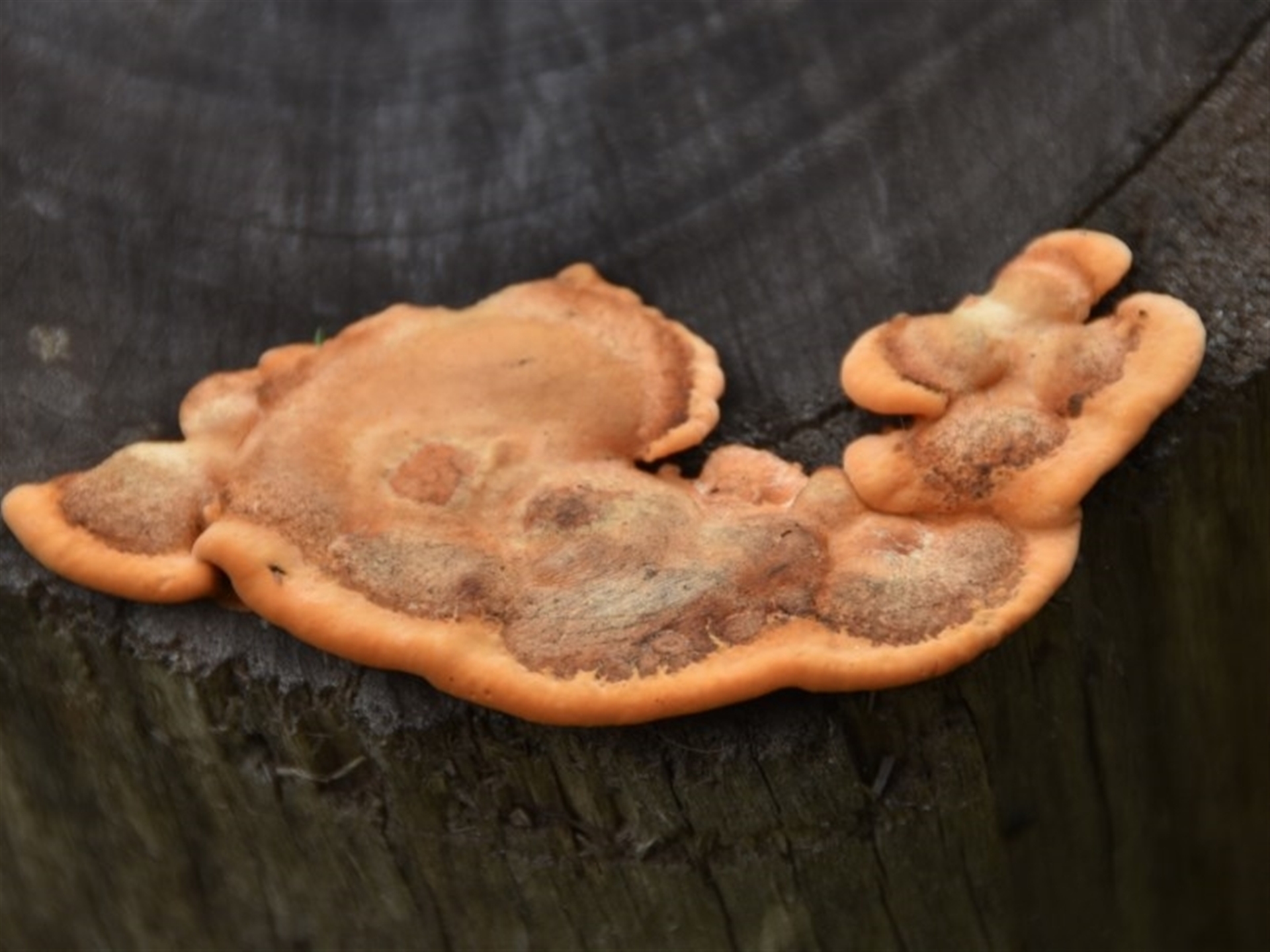 Fungi Shelf-like to hoof-like & usually on wood Pored or somewhat maze-like on underside [bracket polypores] wendie South Coast NatureMapr Polypore sp.