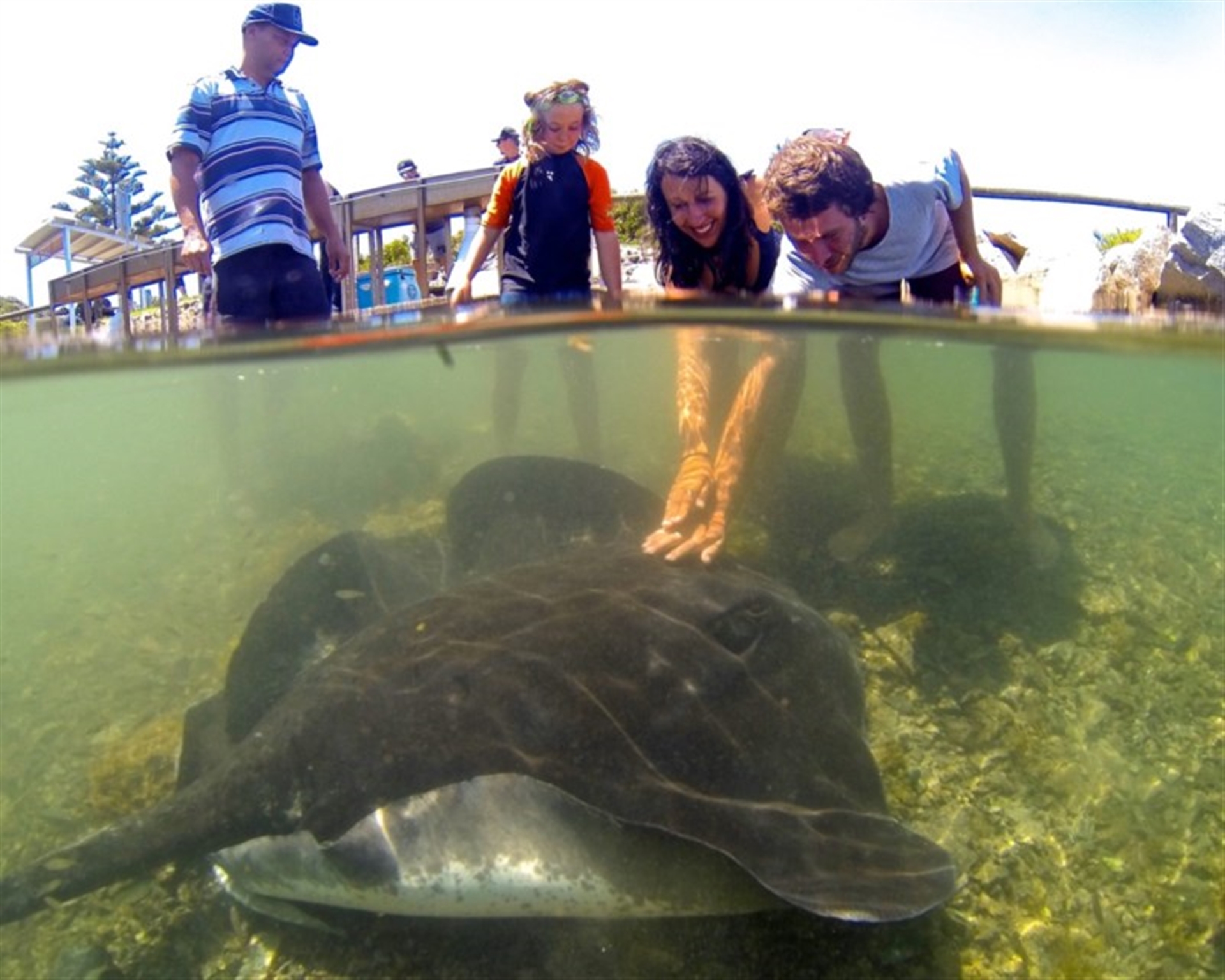 I was able to photograph these HUGE rays swimming in close to people who were filleting fish and patting the rays as they swam by.