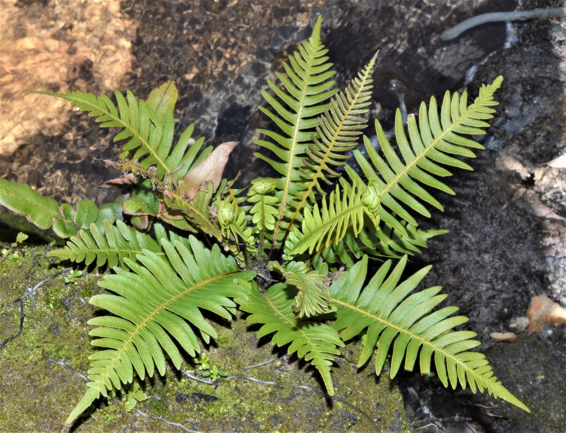 Post-fire regeneration. Note fertile frond centre-right.
