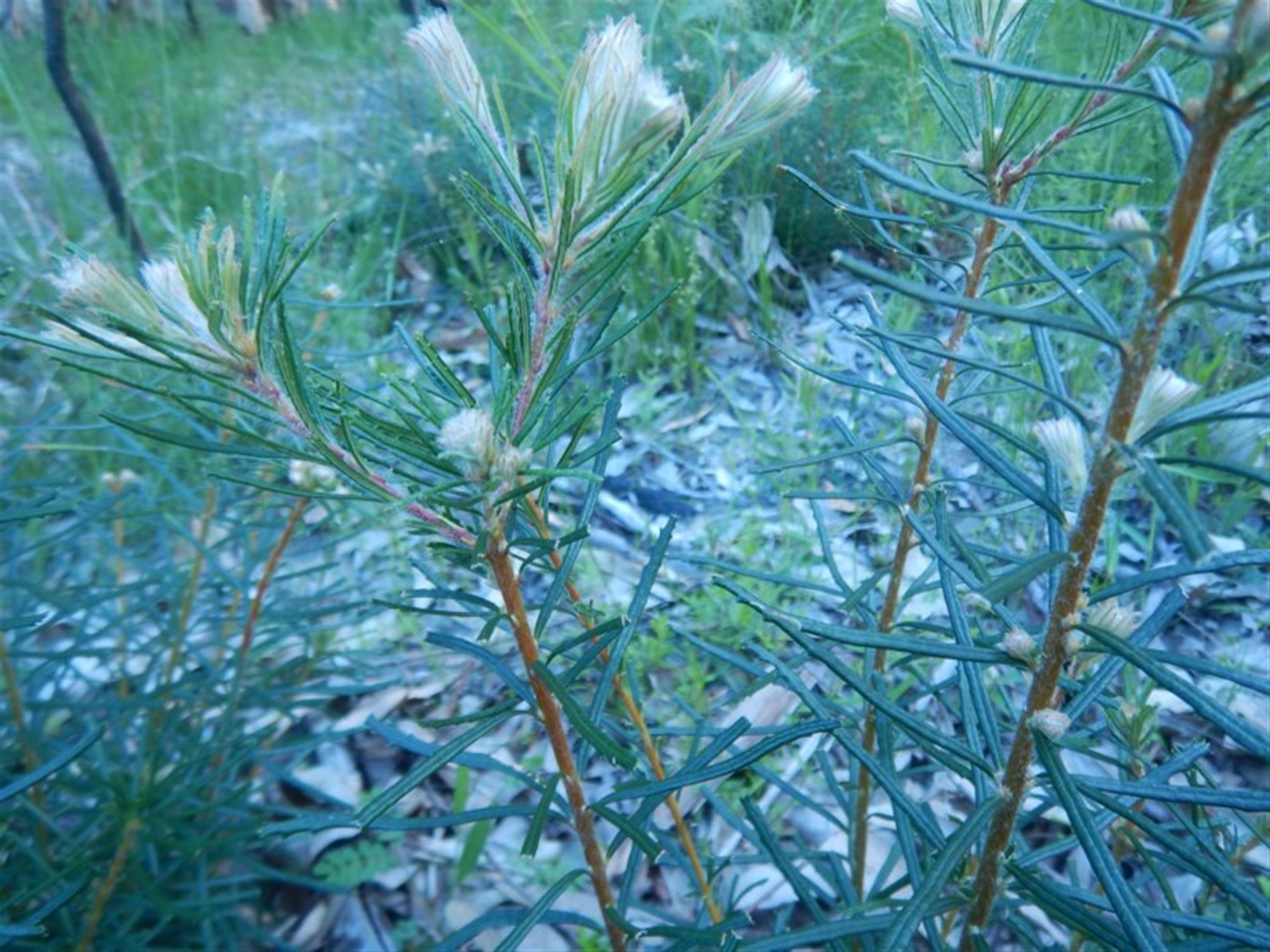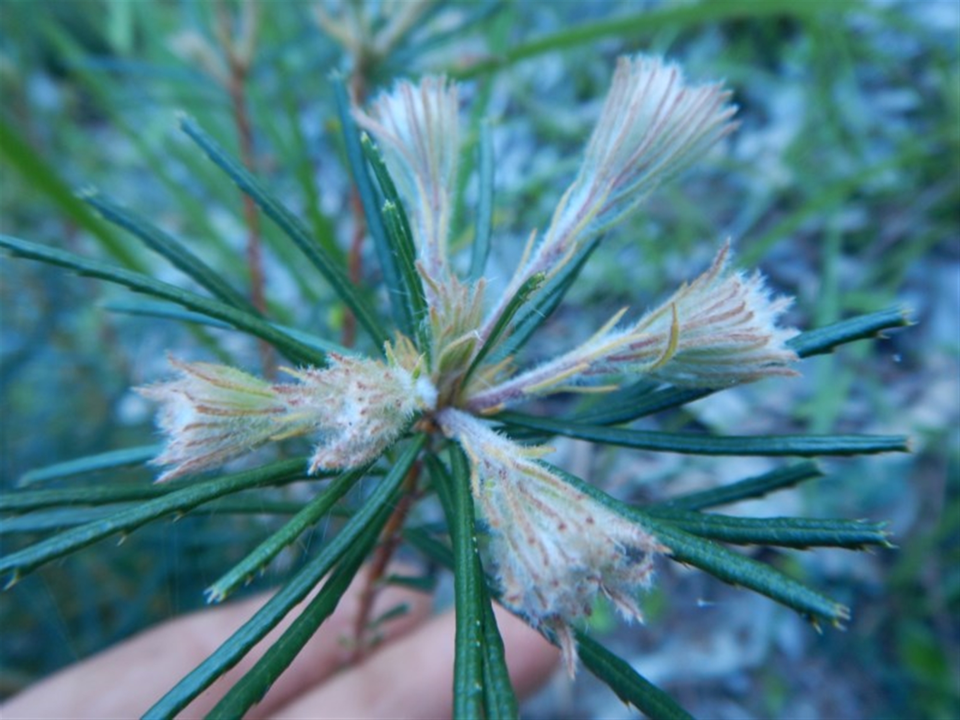 Small shrub to about 50cm high. Banksia spinulosa recovering after fire?