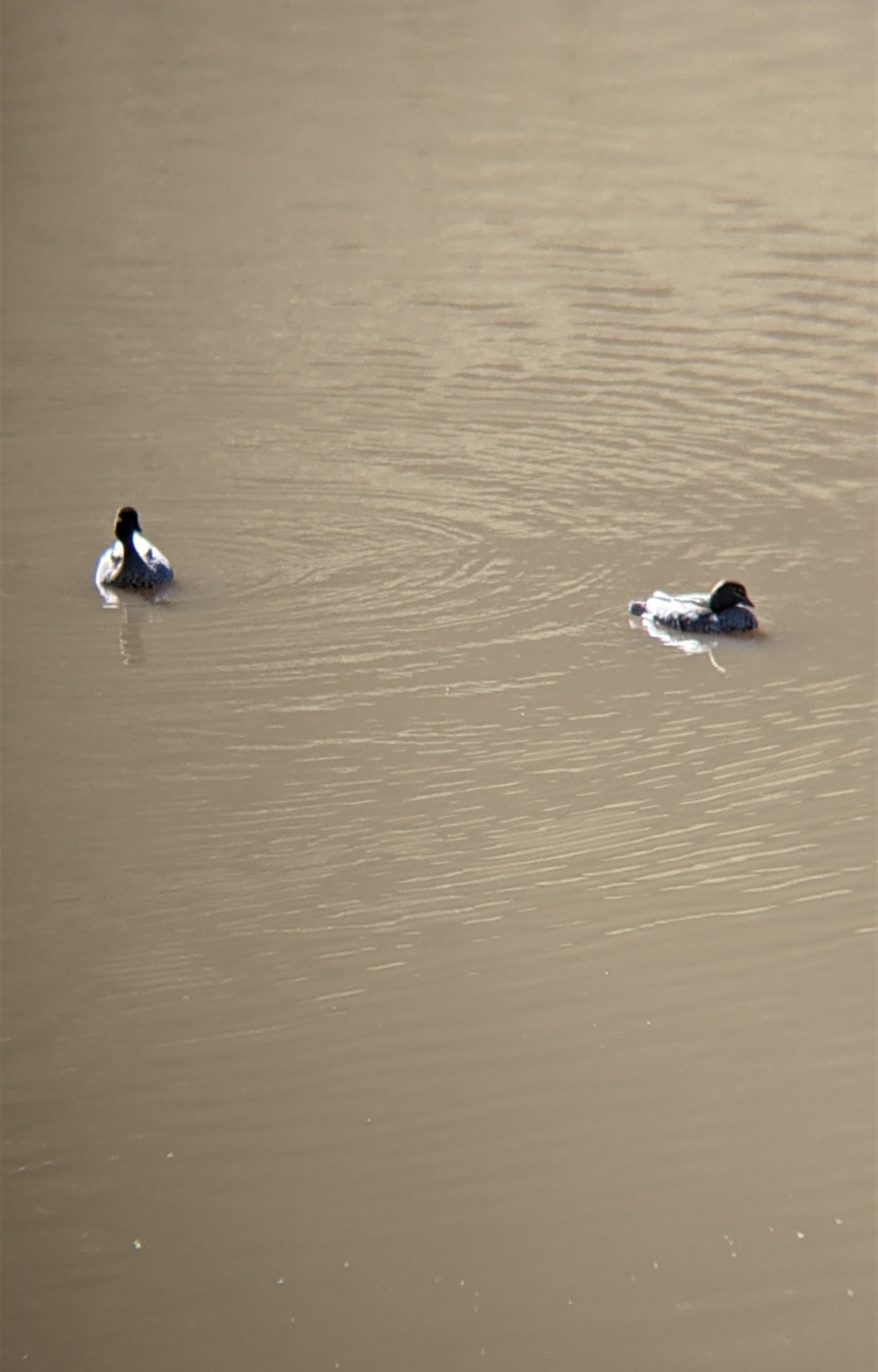 Pair of wood ducks floating on the dam