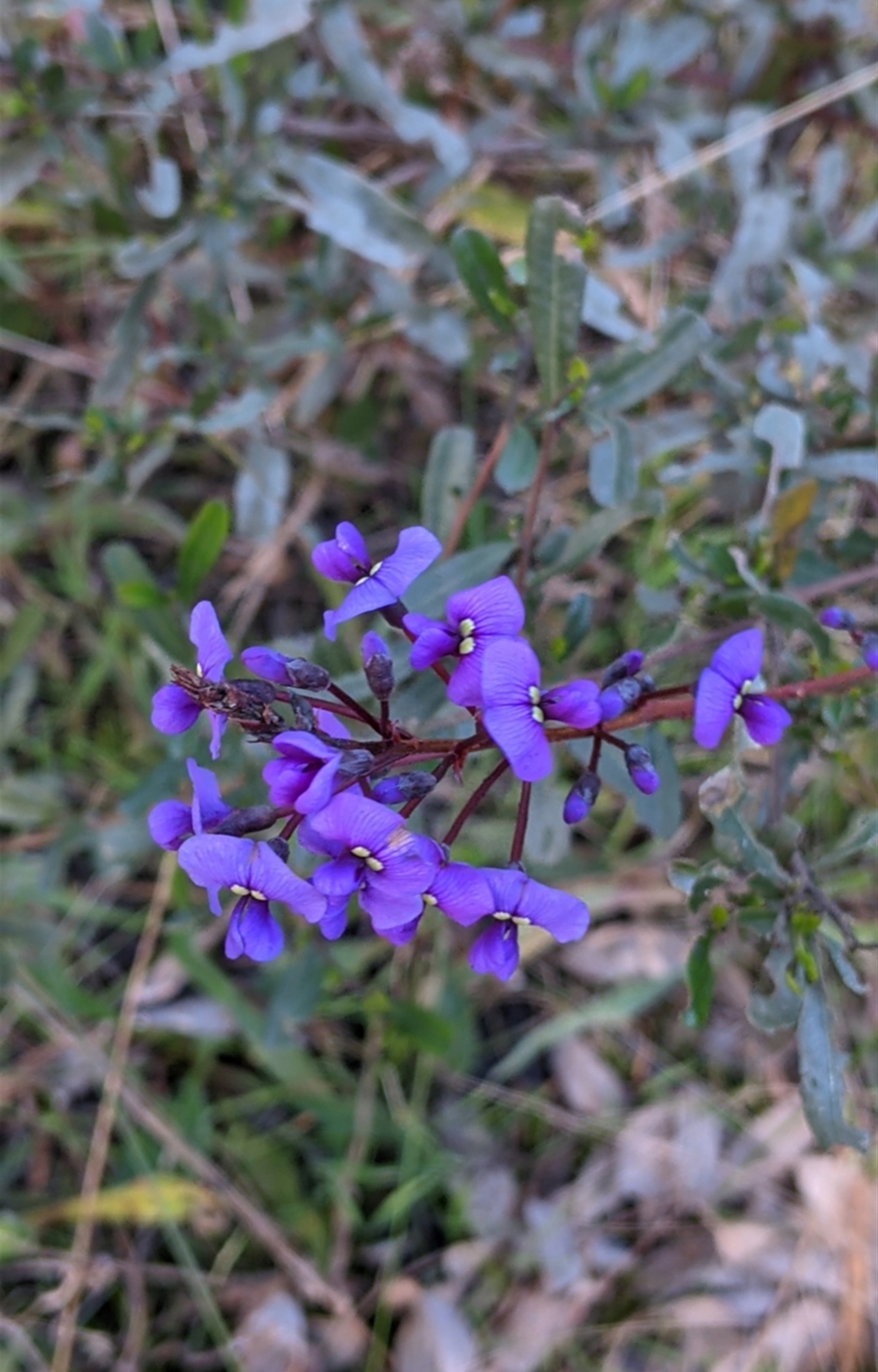 Small hardenbergia in flower. I suspect it may have been planted as reveg