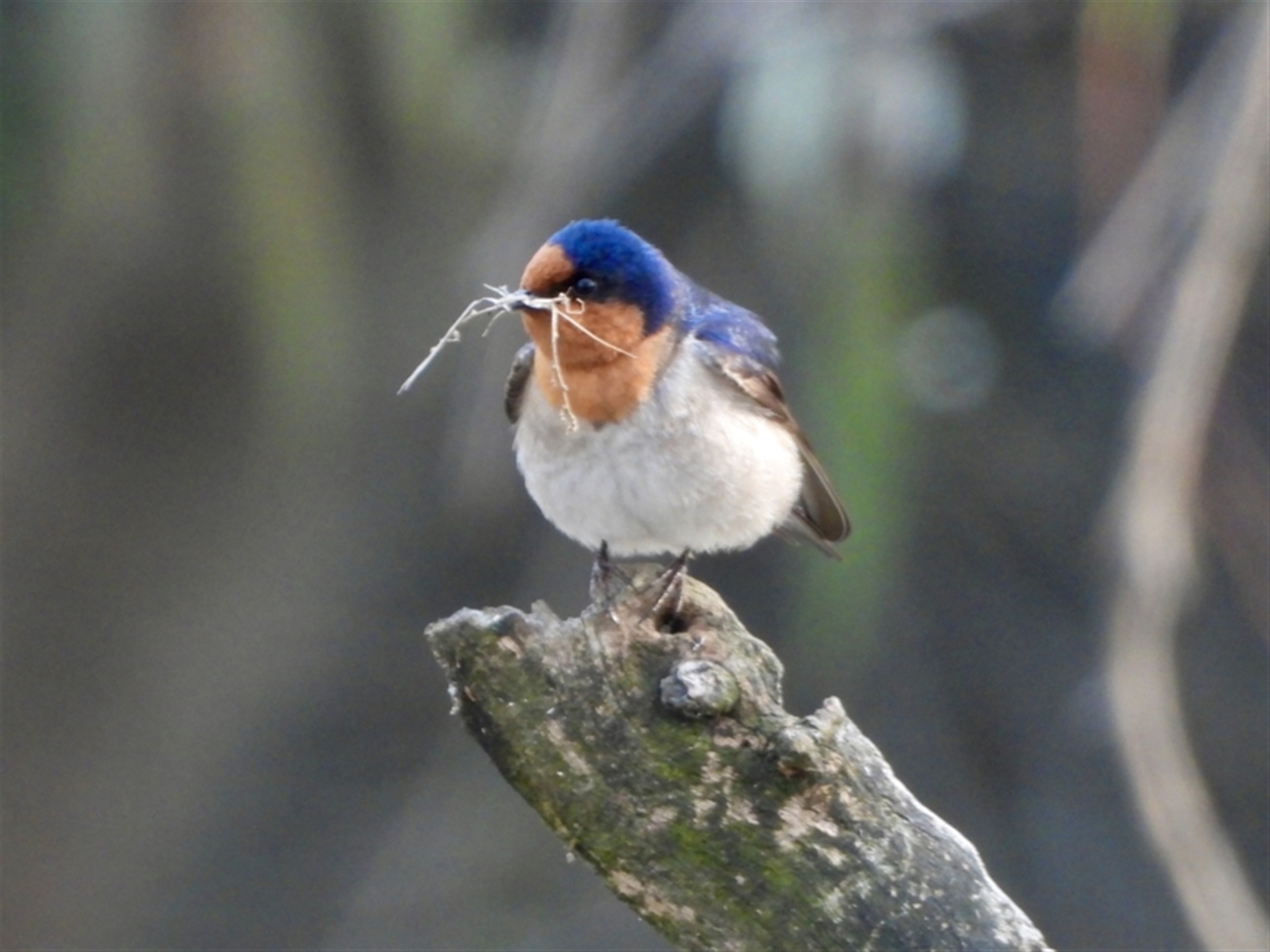Seen gathering nesting material and flying under the bridge.