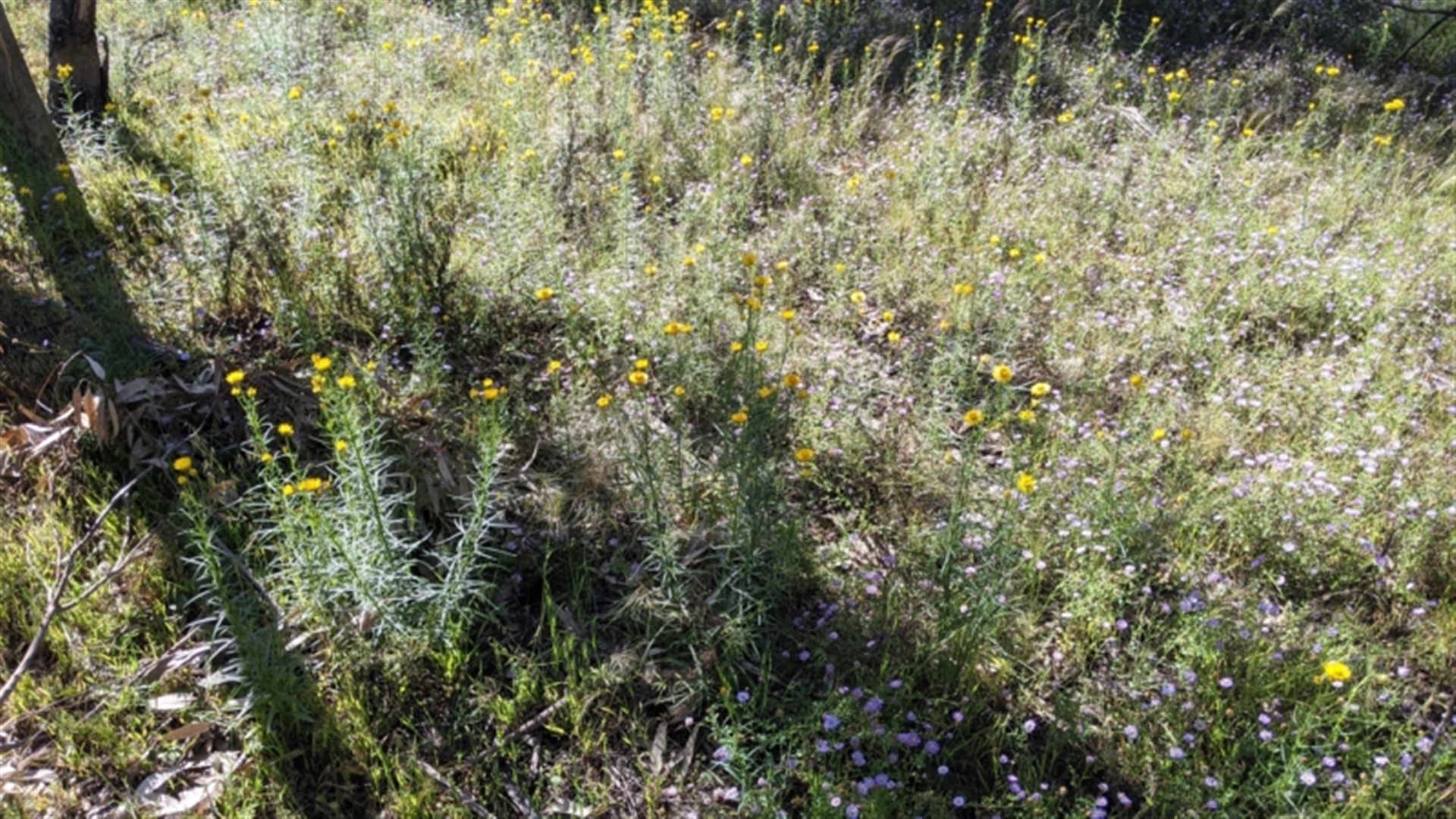 Big patch of flowering sticky everlastings