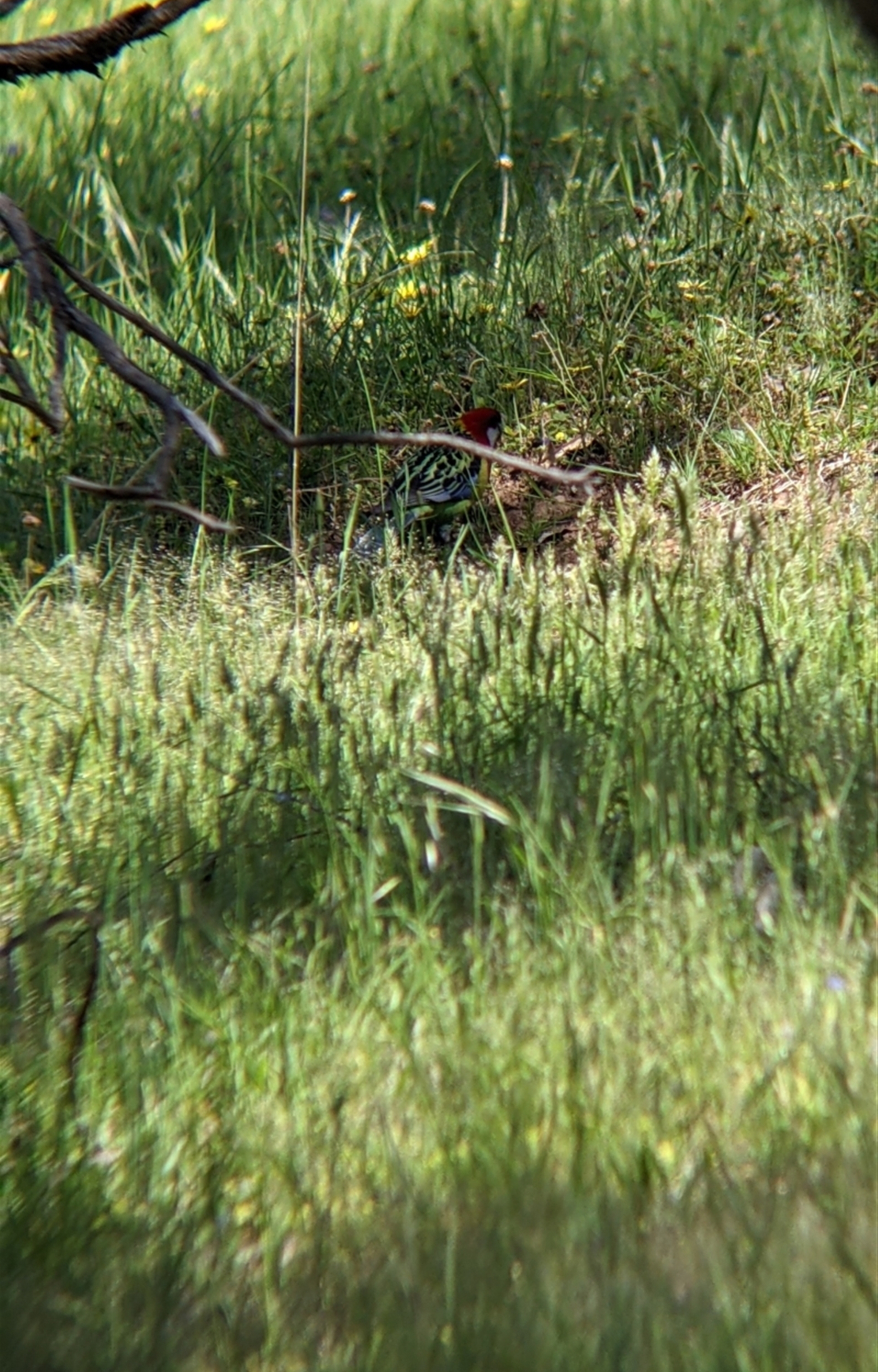 Eastern rosella feeding in the grass