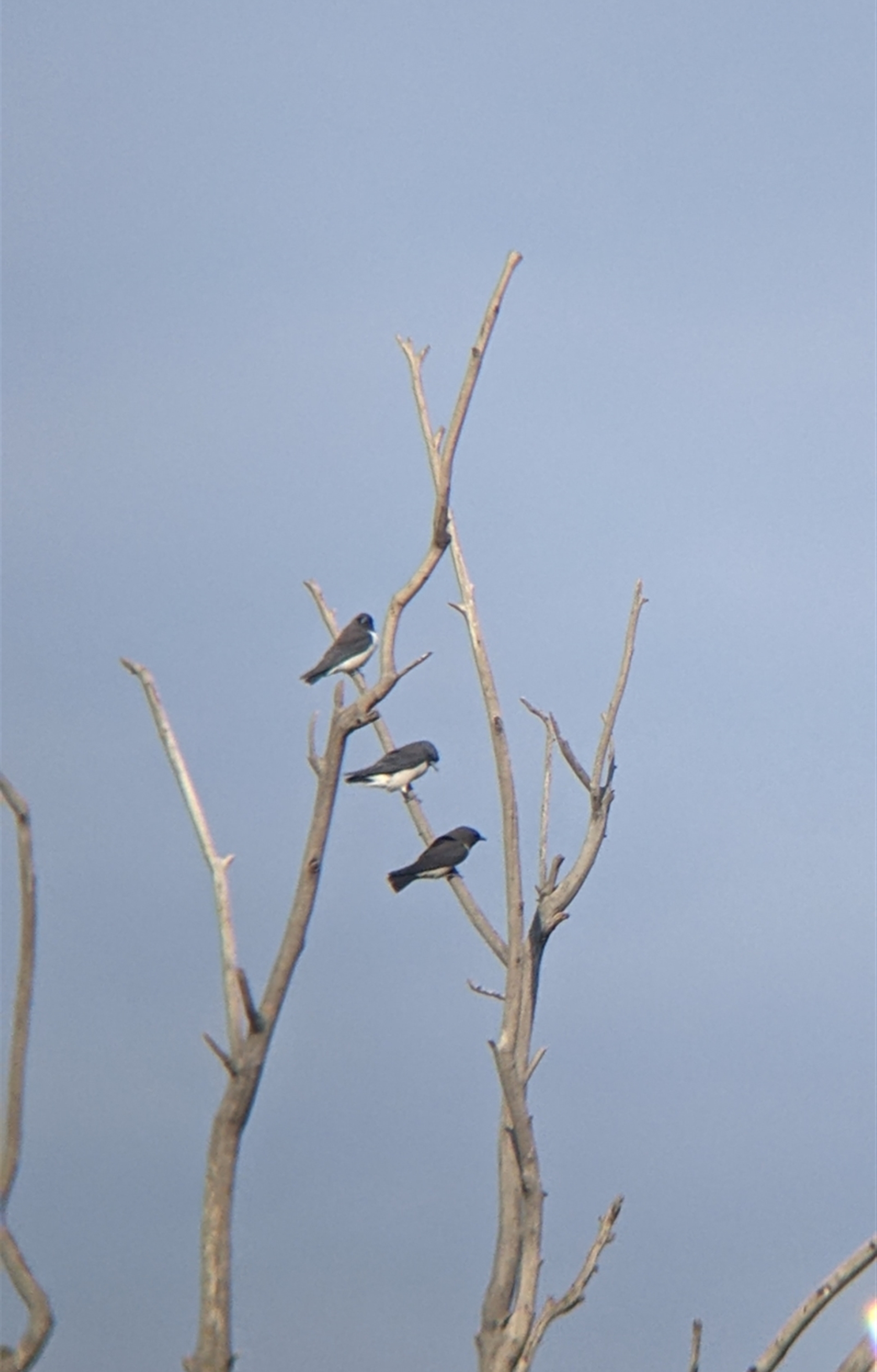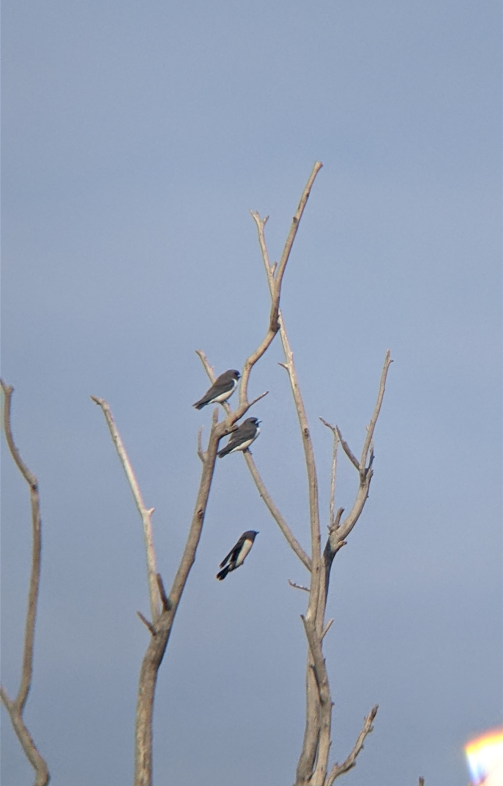 Small group of white-breasted woodswallows flitting around