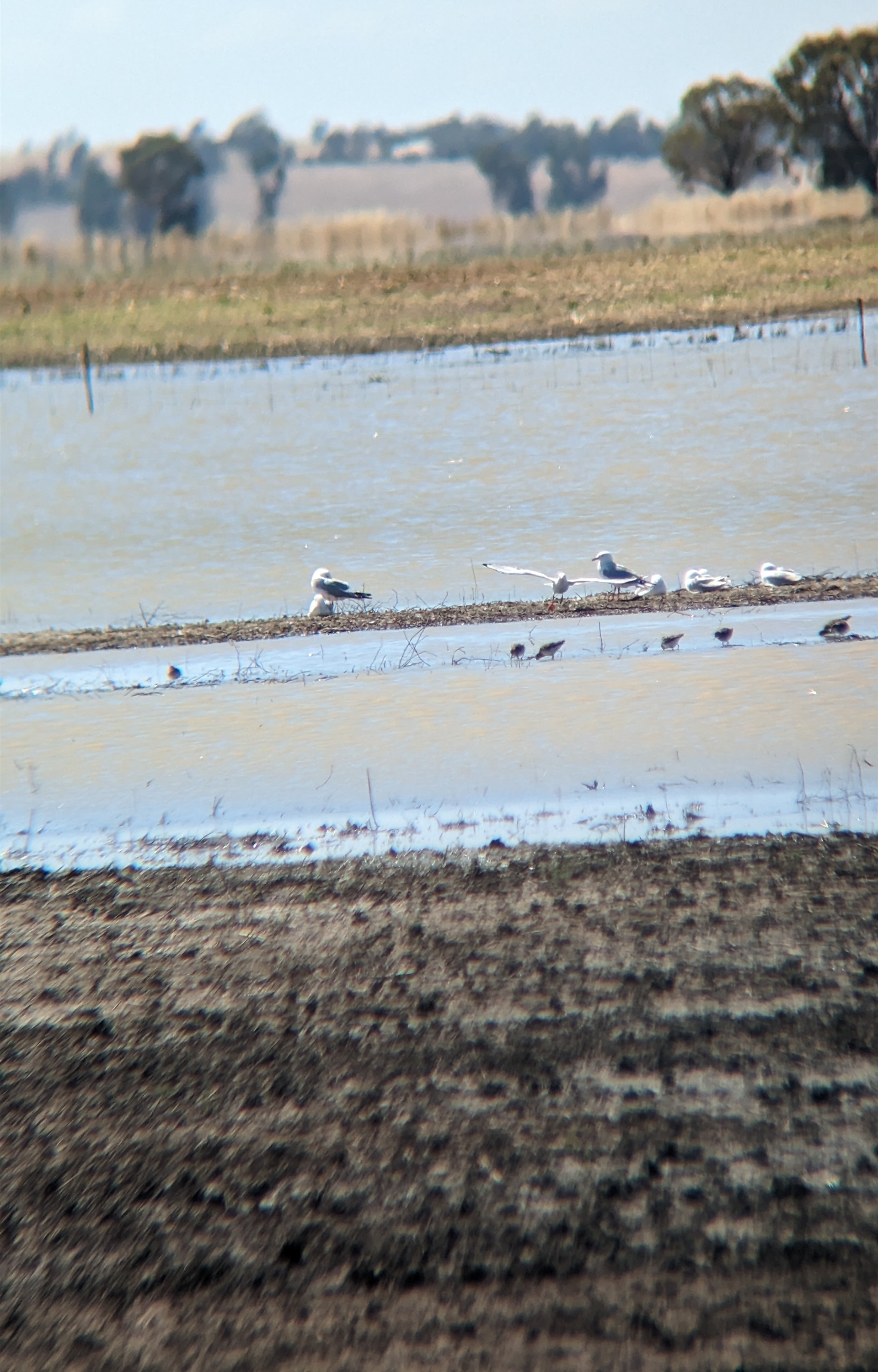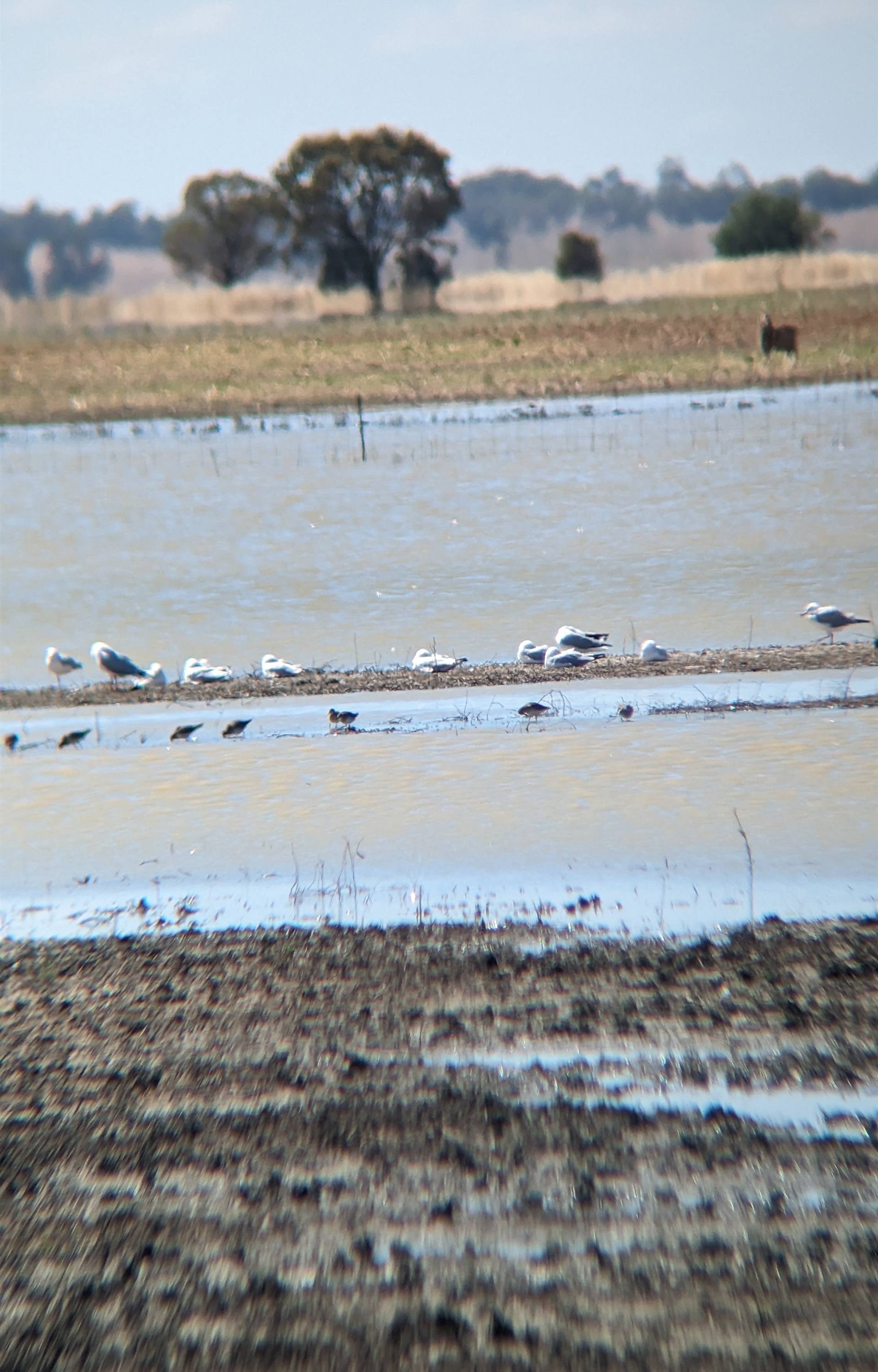 About 200 sharp-tailed sandpipers foraging in the shallows