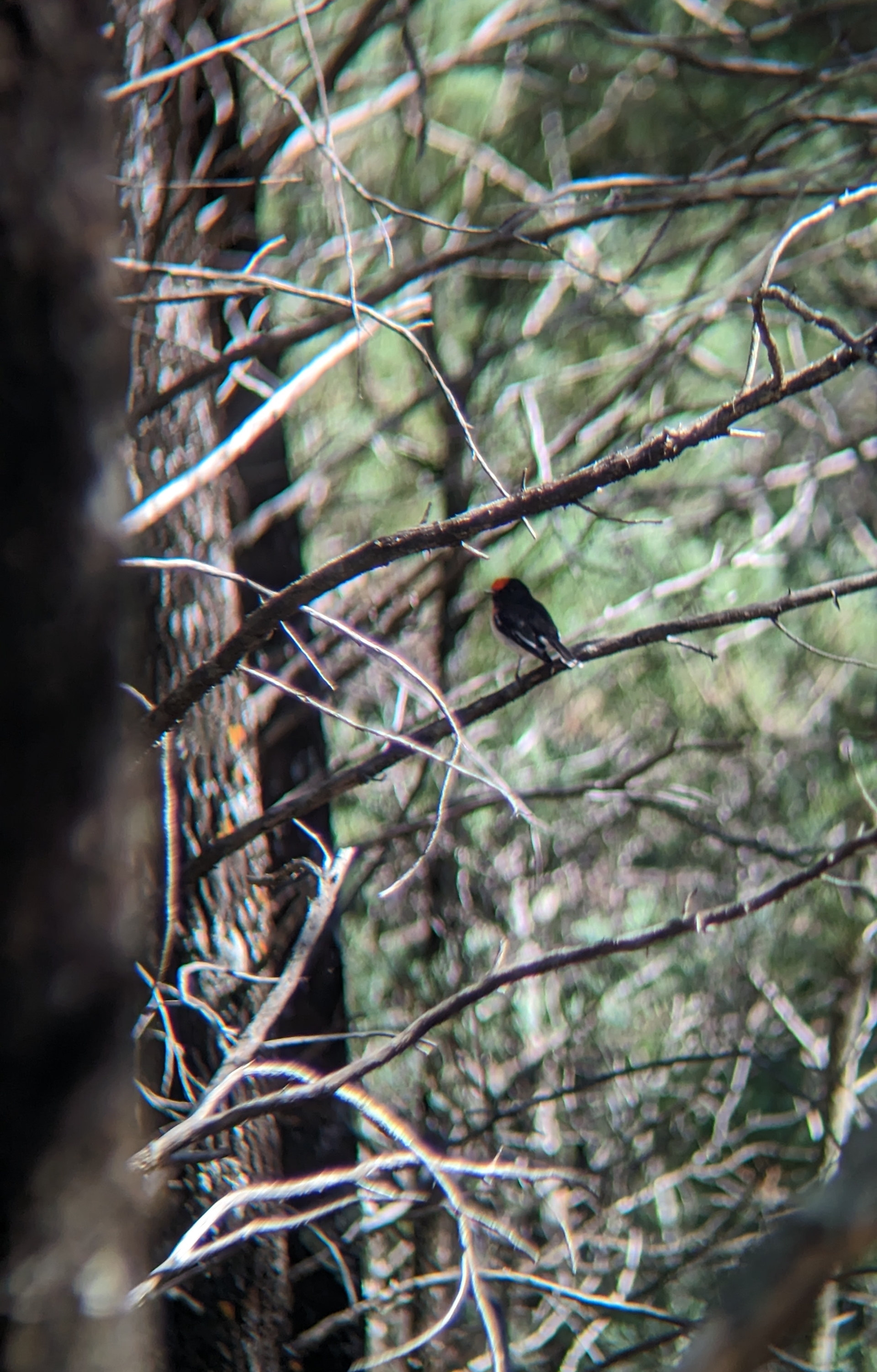 Single male red-capped robin foraging in the midstorey