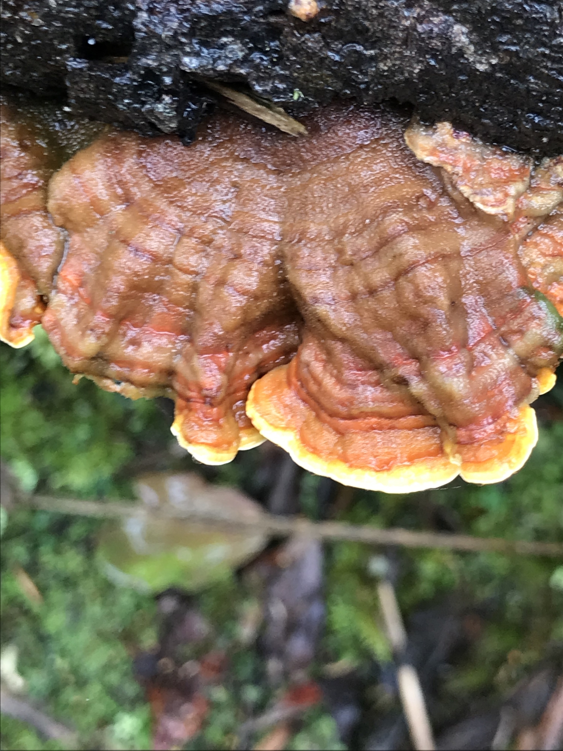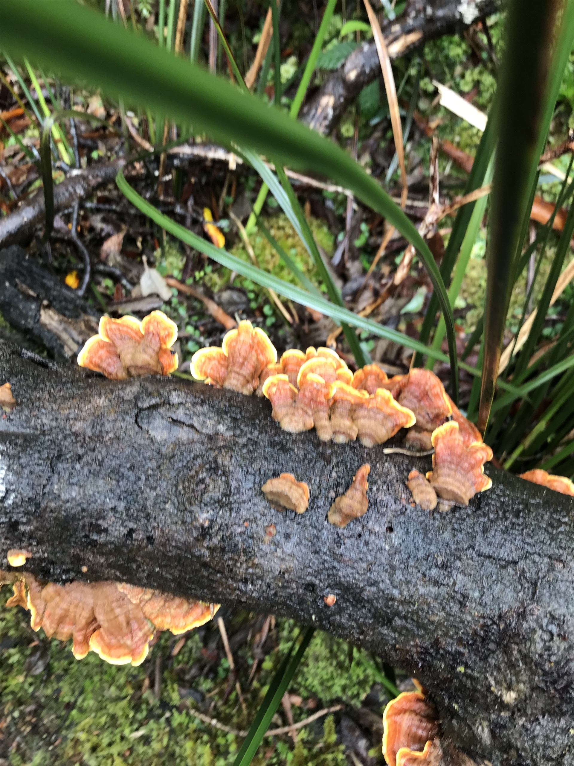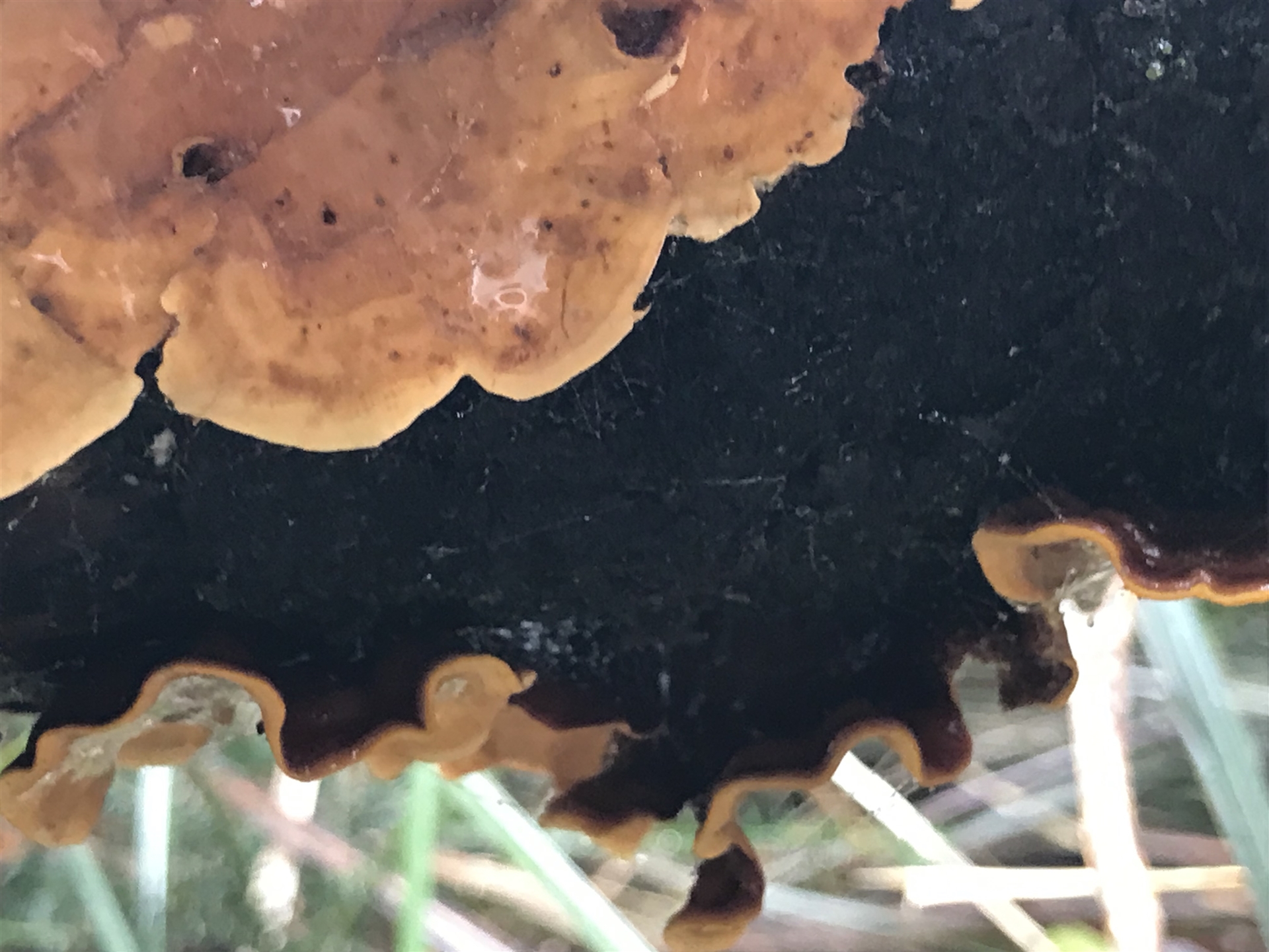 MattFox NatureMapr Stereum ostrea Underside smooth or wrinkled/roughened <Stereum etc> Shelf-like to hoof-like & usually on wood Fungi