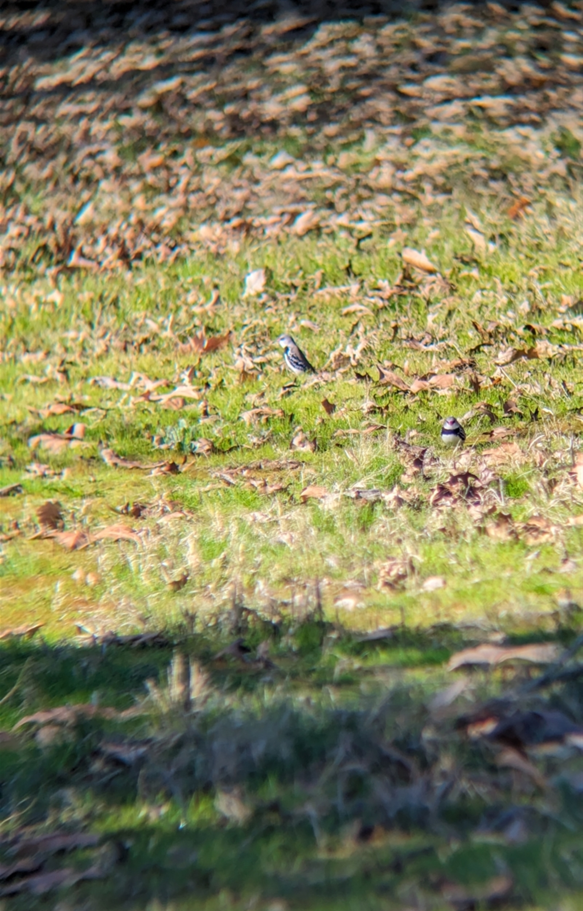 Little mob of Diamond Firetails foraging on the ground in the homestead garden