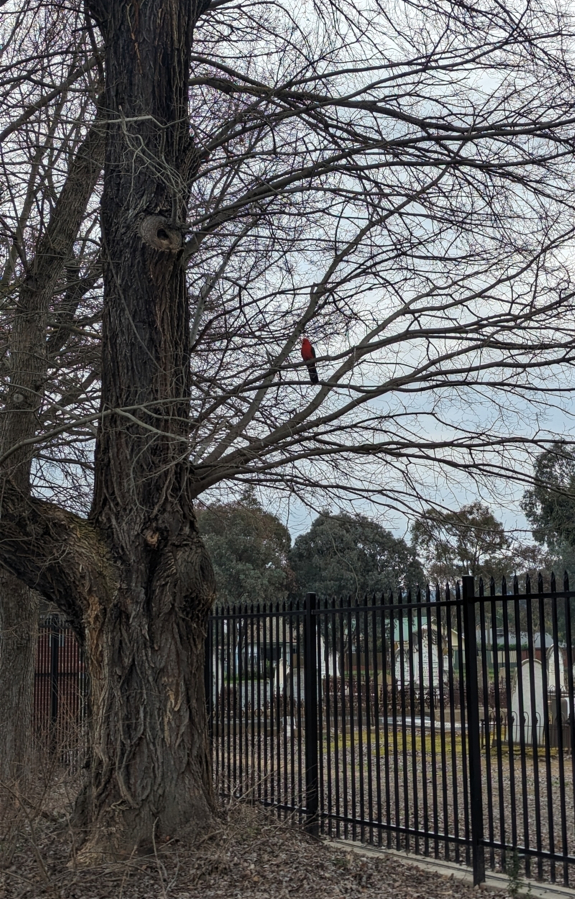 Pair of king parrots near the cemetery entrance