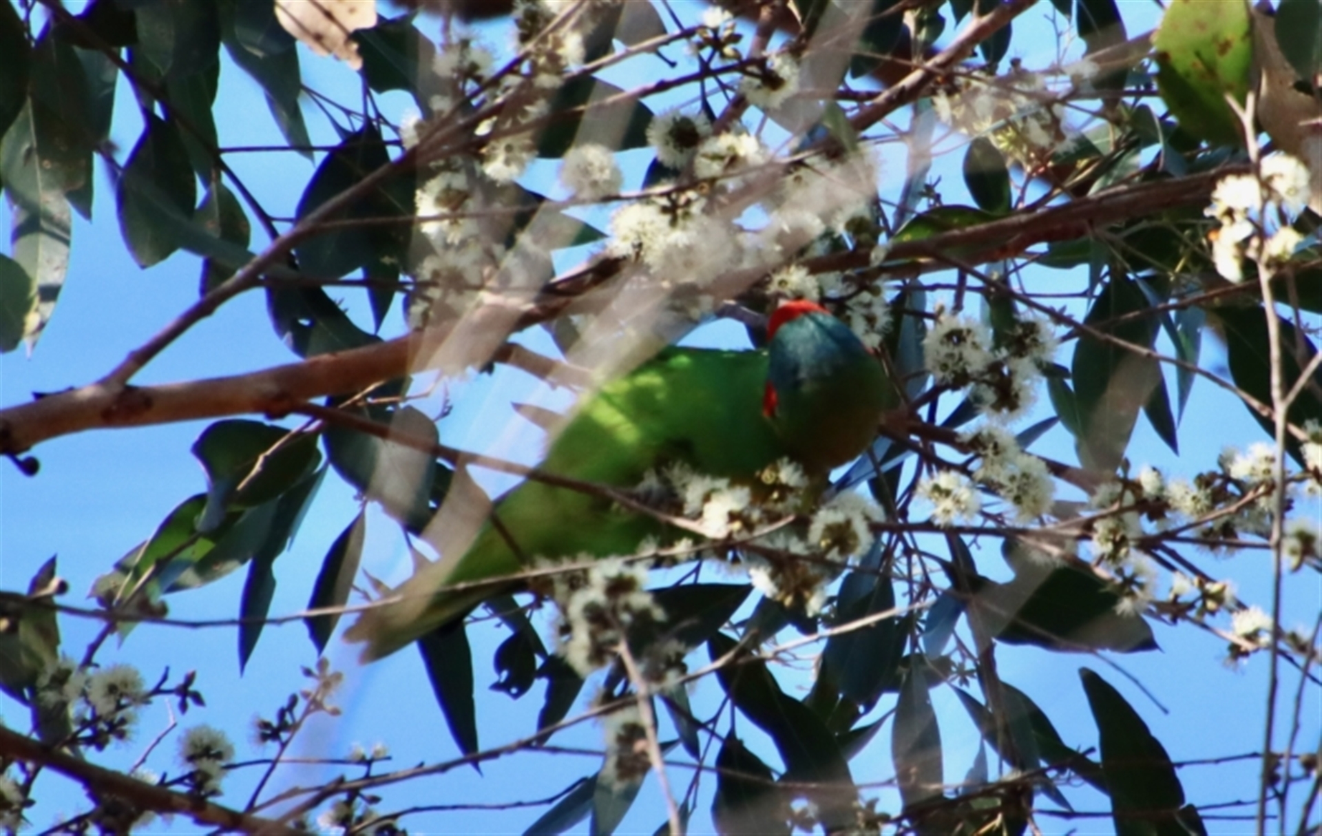 This one flowering gum was teeming with numerous feasting (and fighting) birds. I've posted just the ones I saw (they were very high up), which were: new holland honeyeater; white-naked honeyeater; scarlet honeyeater; red wattle bird; little wattle bird; leaden flycatcher; olive-backed oriole; musk lorikeet and white-throated tree creeper. Flying above was a white-bellied sea eagle. Amazing!