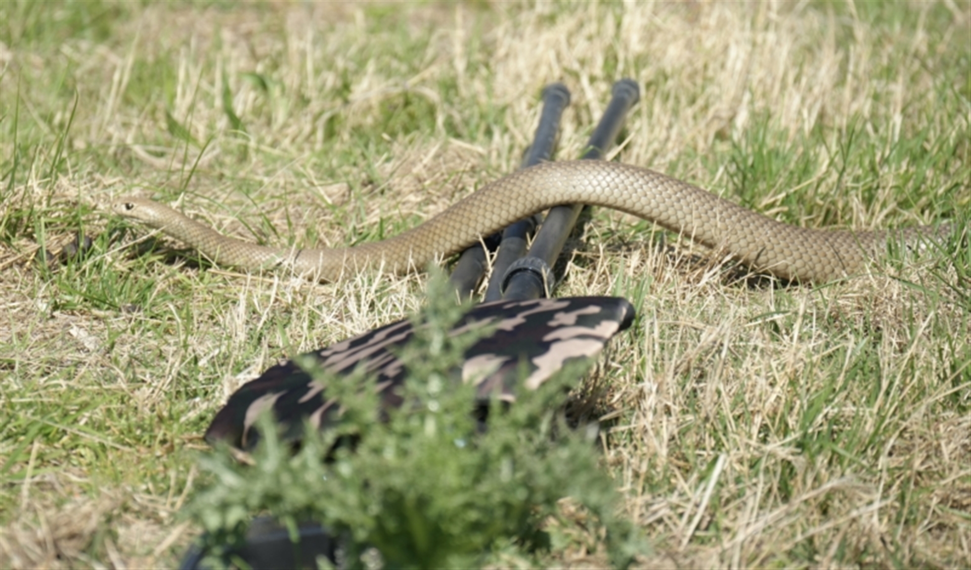 Photographing Mistletoe Bird when discovered Eastern Brown Snake? behind us heading from lake to grassland.