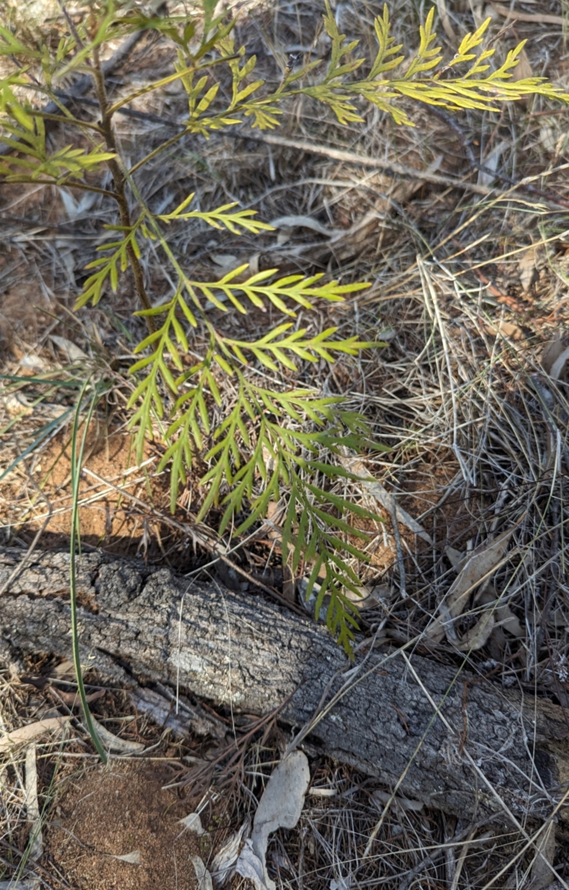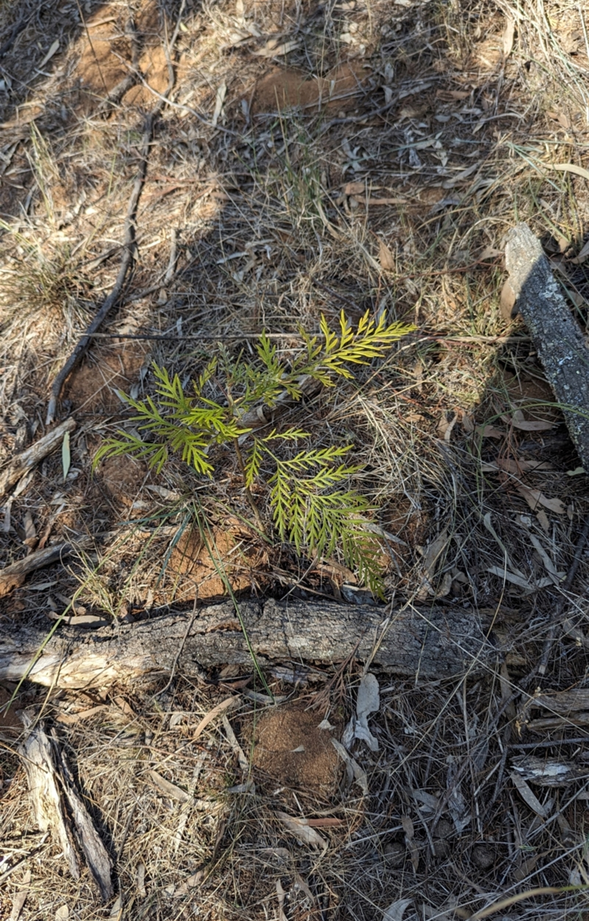Single silky oak seedling. Pulled it out after taking the picture