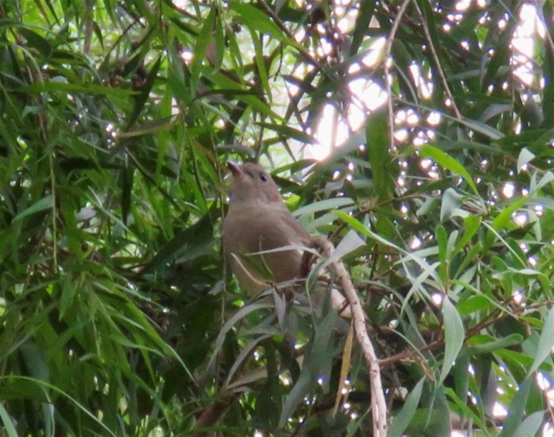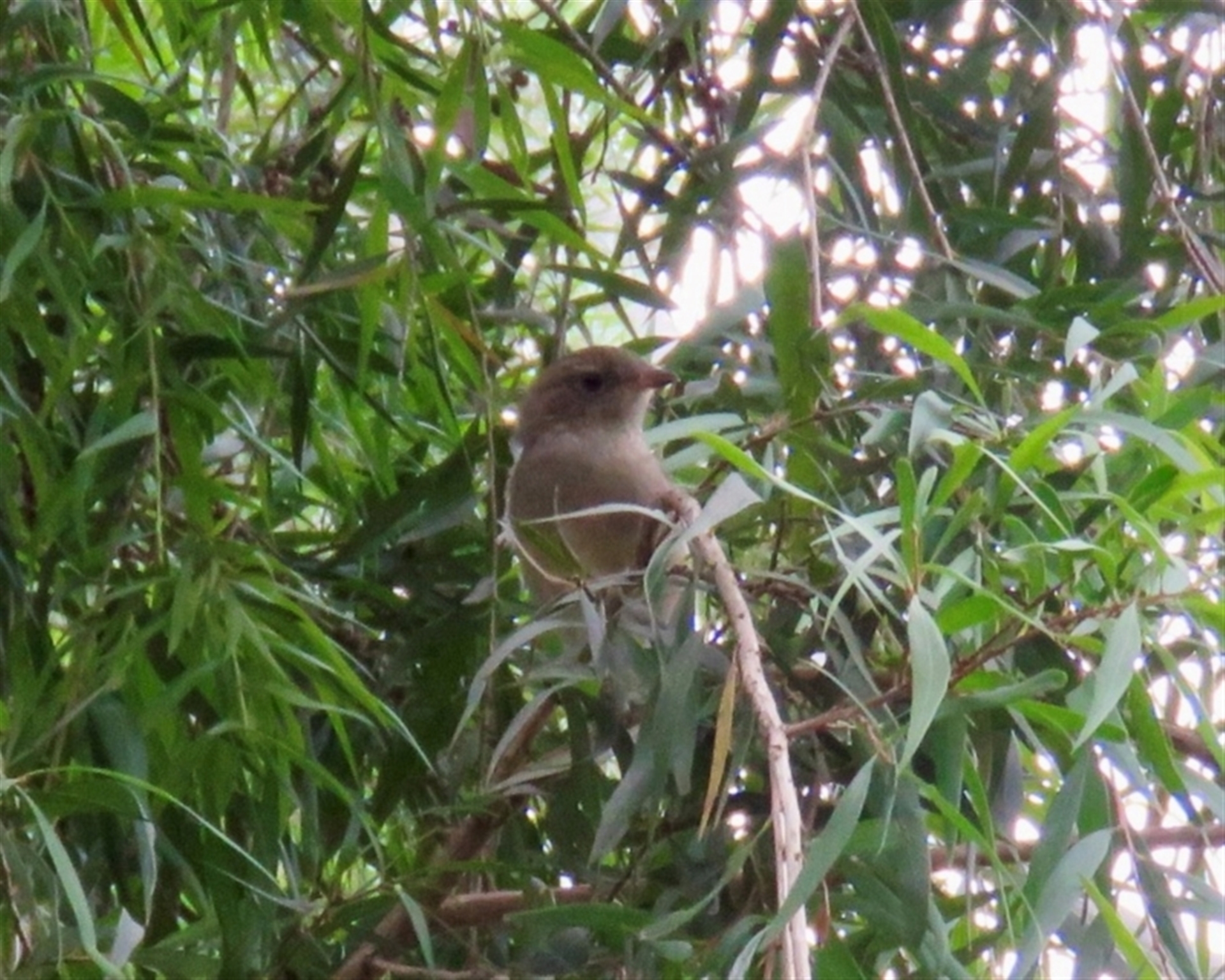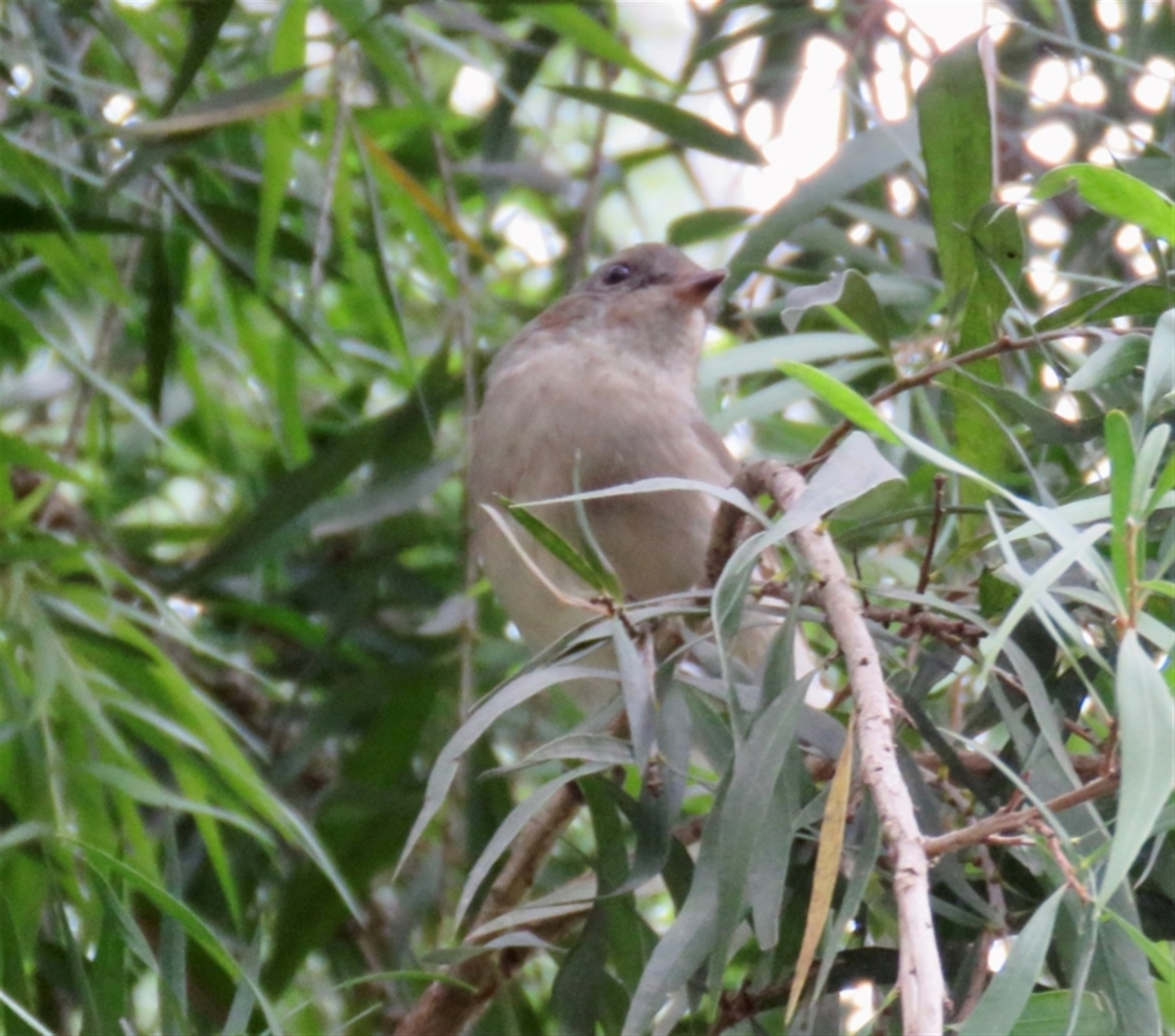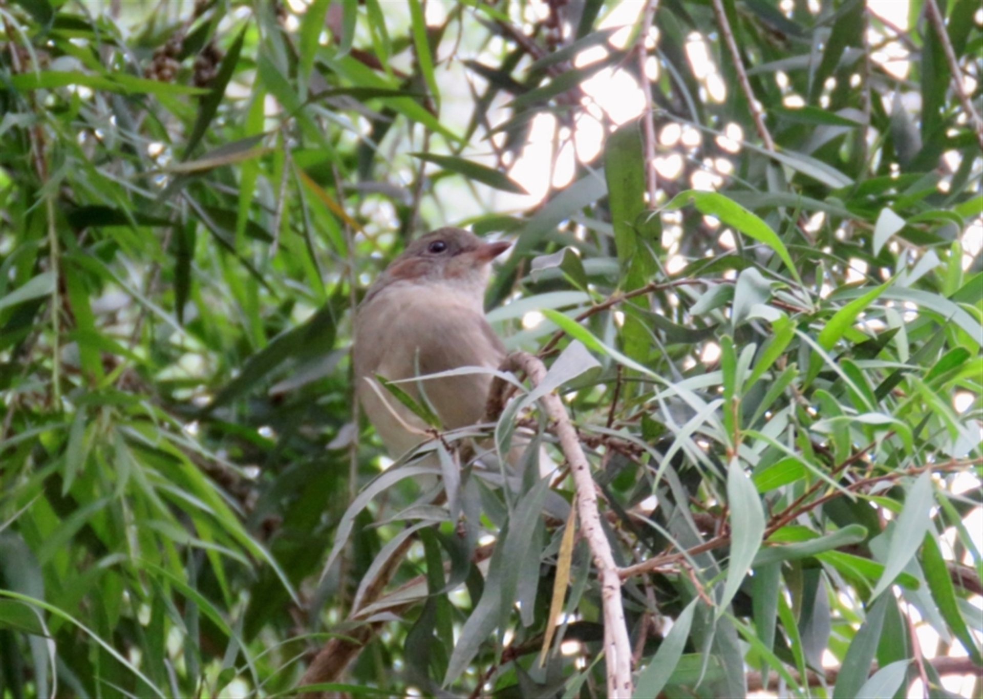 Immature Golden Whistler in mixed feeding flock with grey fantails and brown thornbills