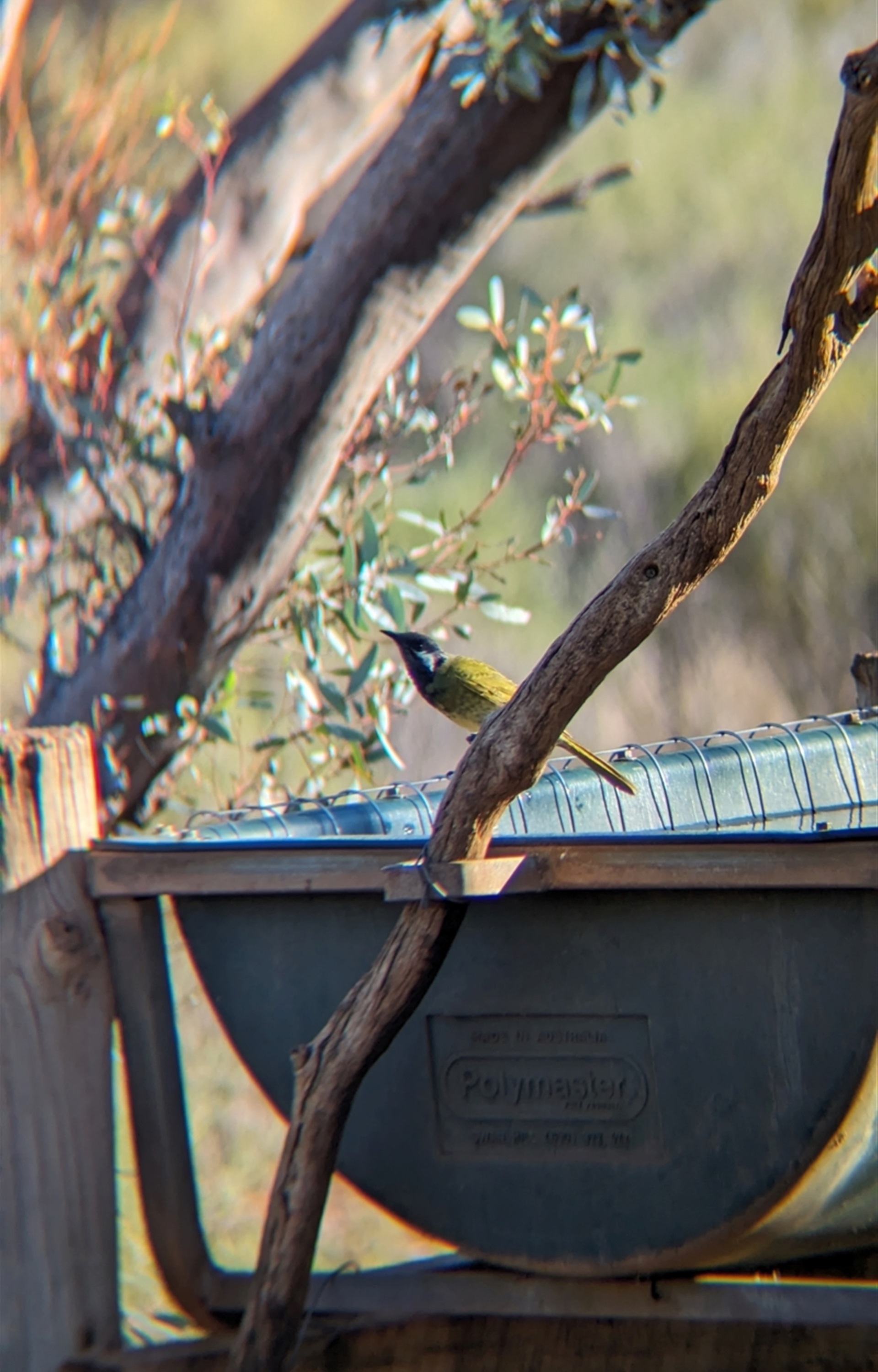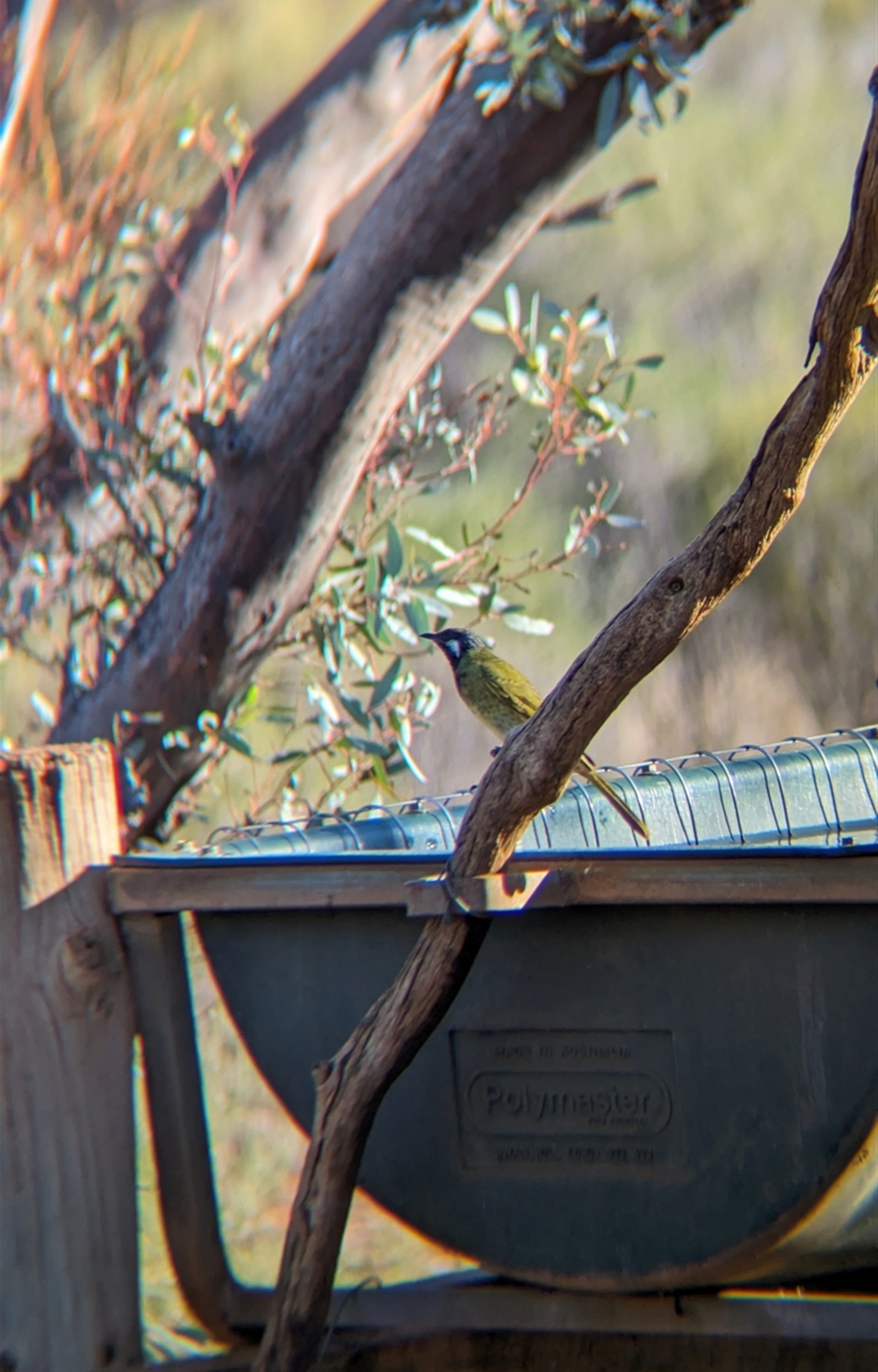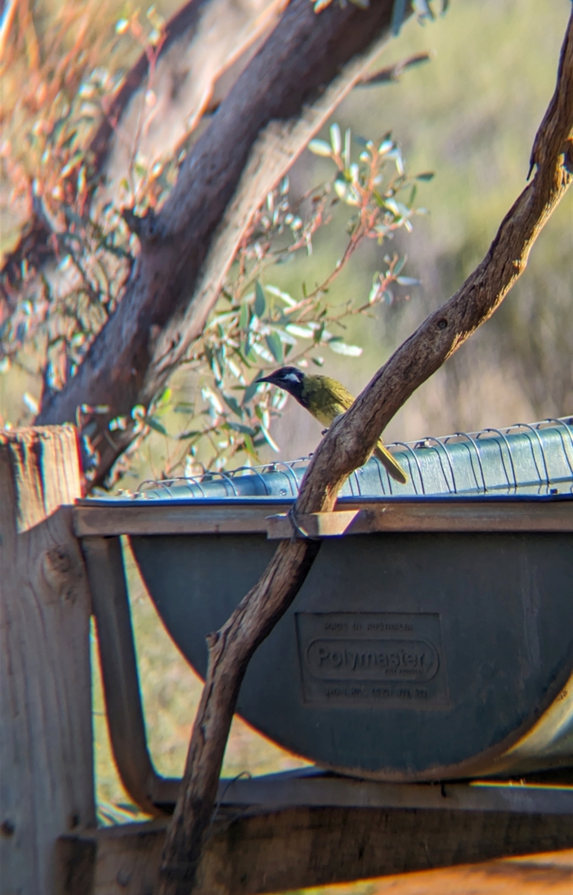 White-eared Honeyeater came down to drink from the bird bath