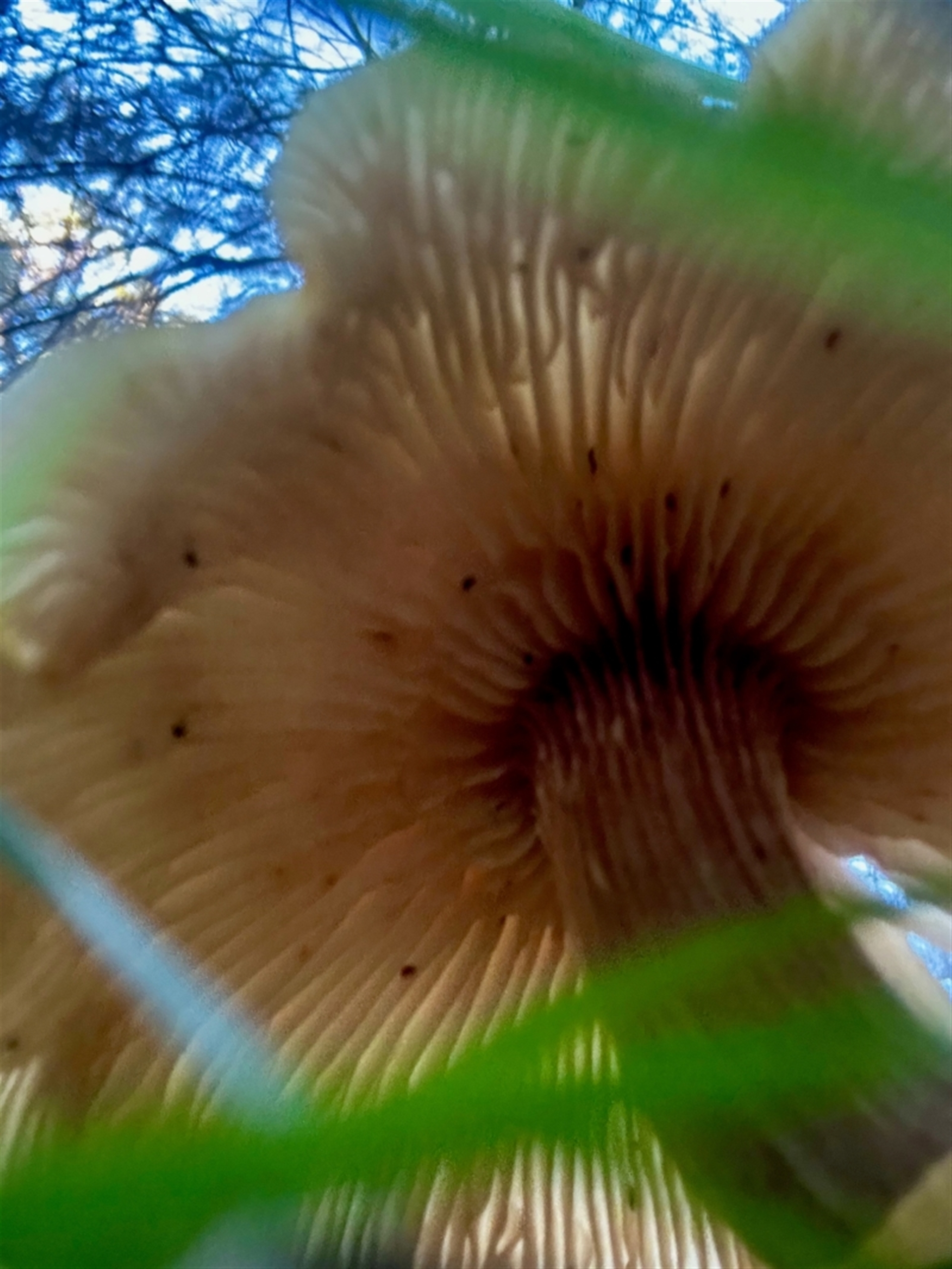 This looks very like an Armillaria sp we saw yesterday further south from your sighting, yet ageing growing in a similar manner from wood, some living and some dead - I hesitate to try for species, sorry