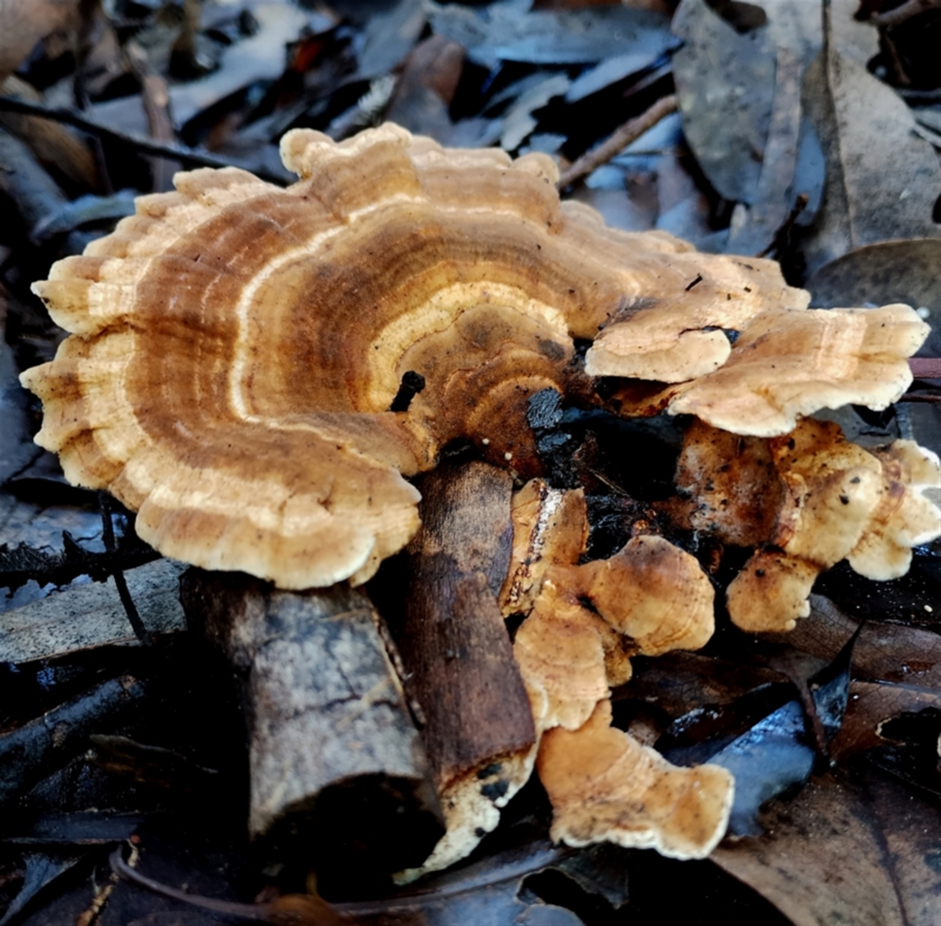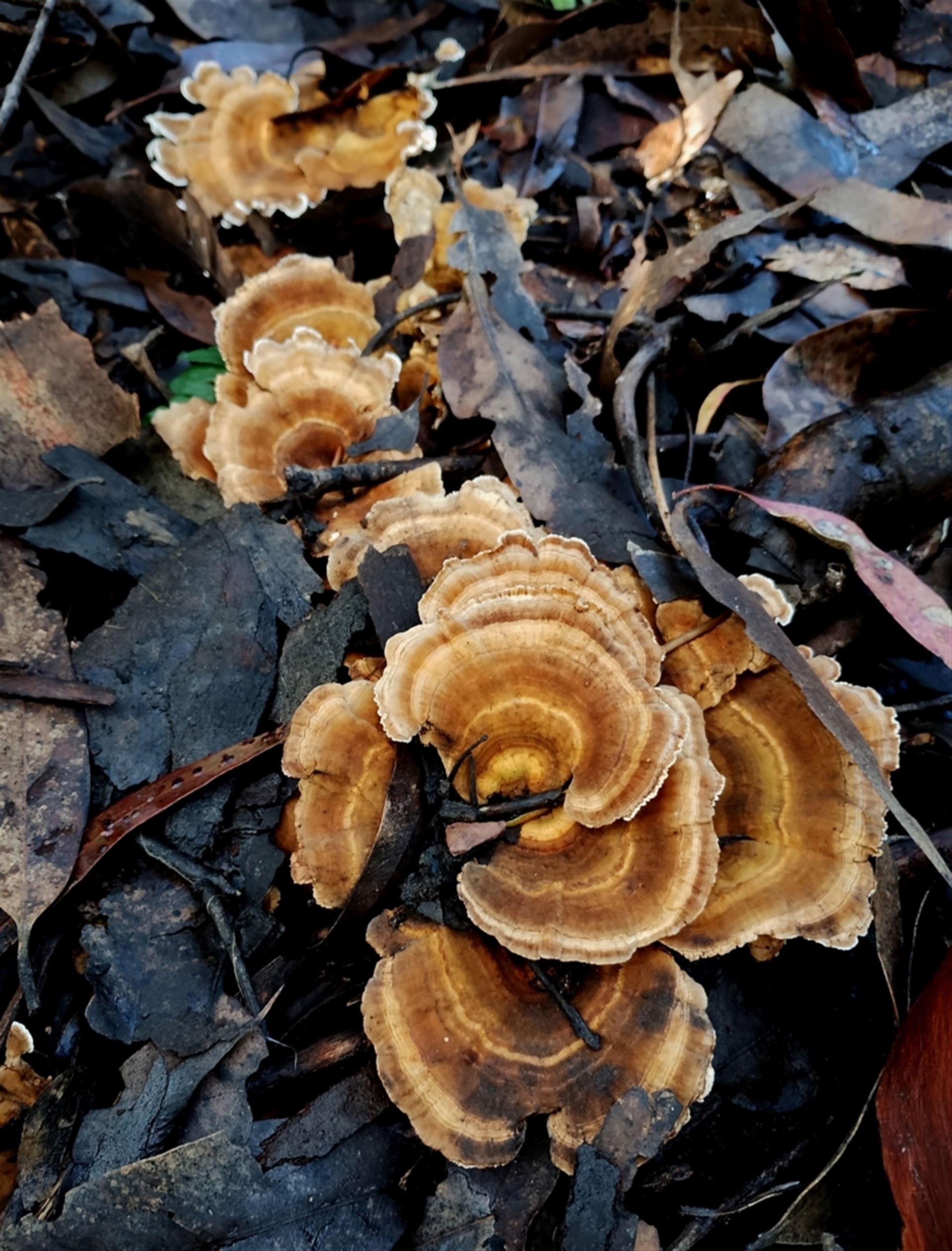 Teresa NatureMapr South Coast Trametes versicolor Pored or somewhat maze-like on underside [bracket polypores] Shelf-like to hoof-like & usually on wood Fungi