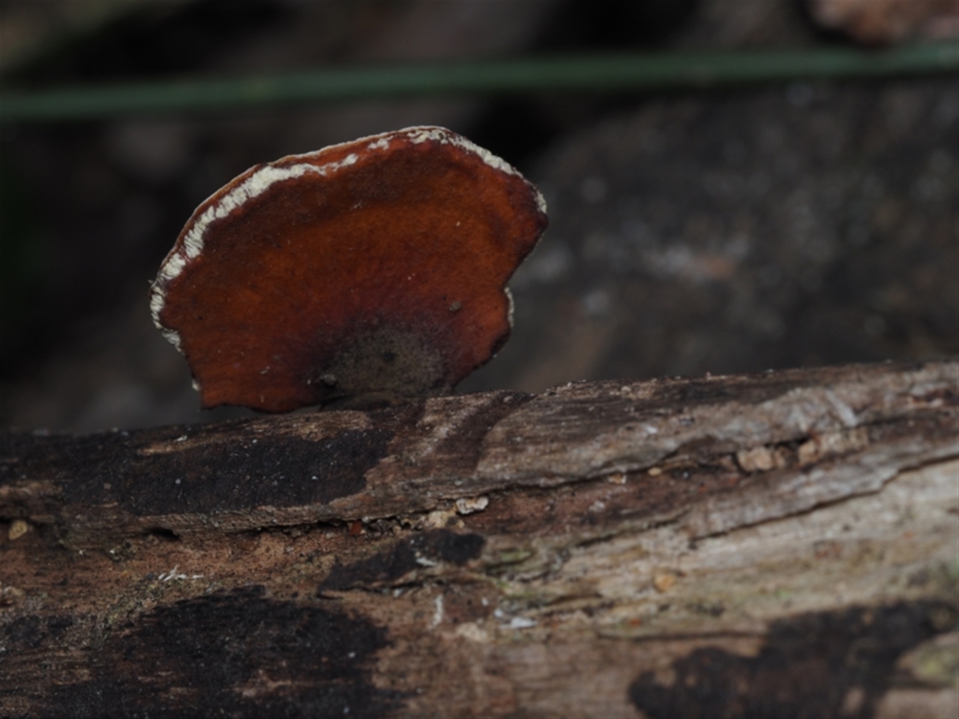 Growing on fallen dead branch.