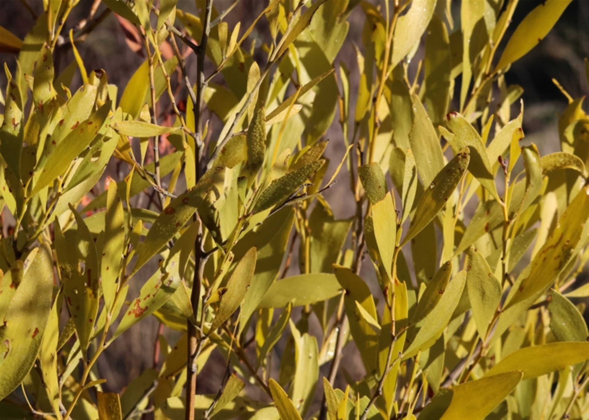 looks like a beautiful wattle full out in flower. Nope its just the sickly yellow leaves standing out!