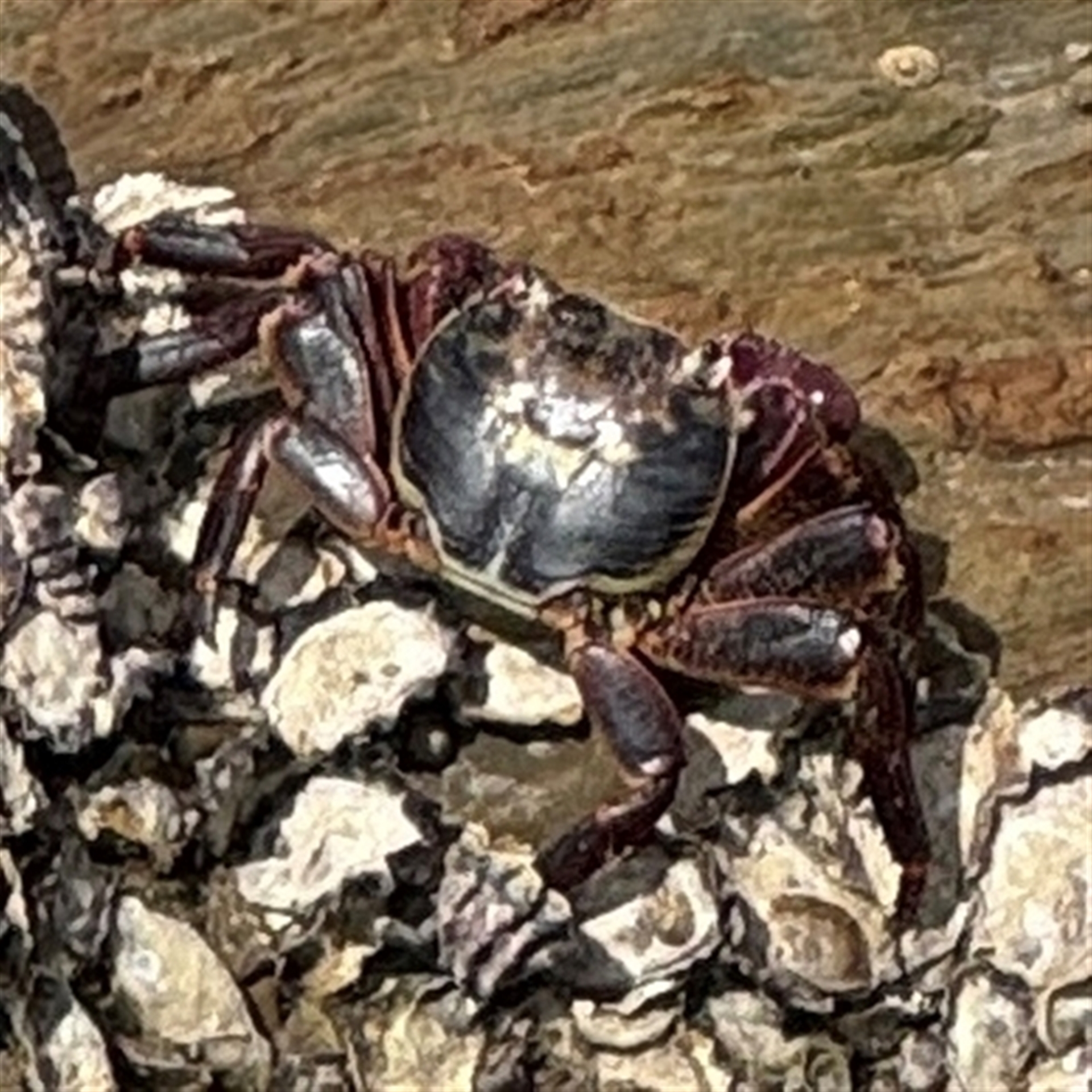Hejor1 South Coast NatureMapr Crabs (Decapoda, Brachyura) Crabs, Prawns, Barnacles & allies (Crustacea) Marine Invertebrates Leptograpsus variegatus