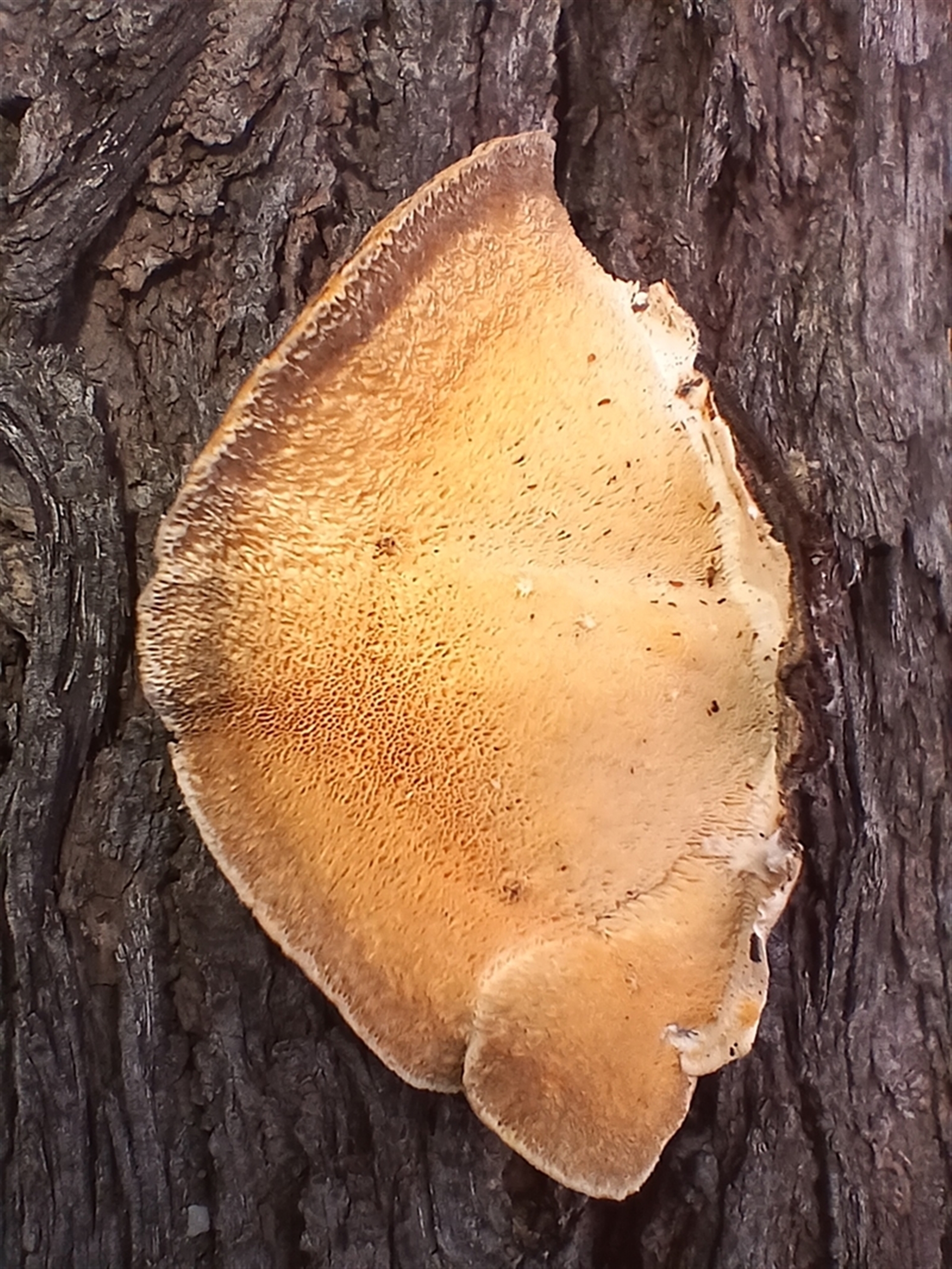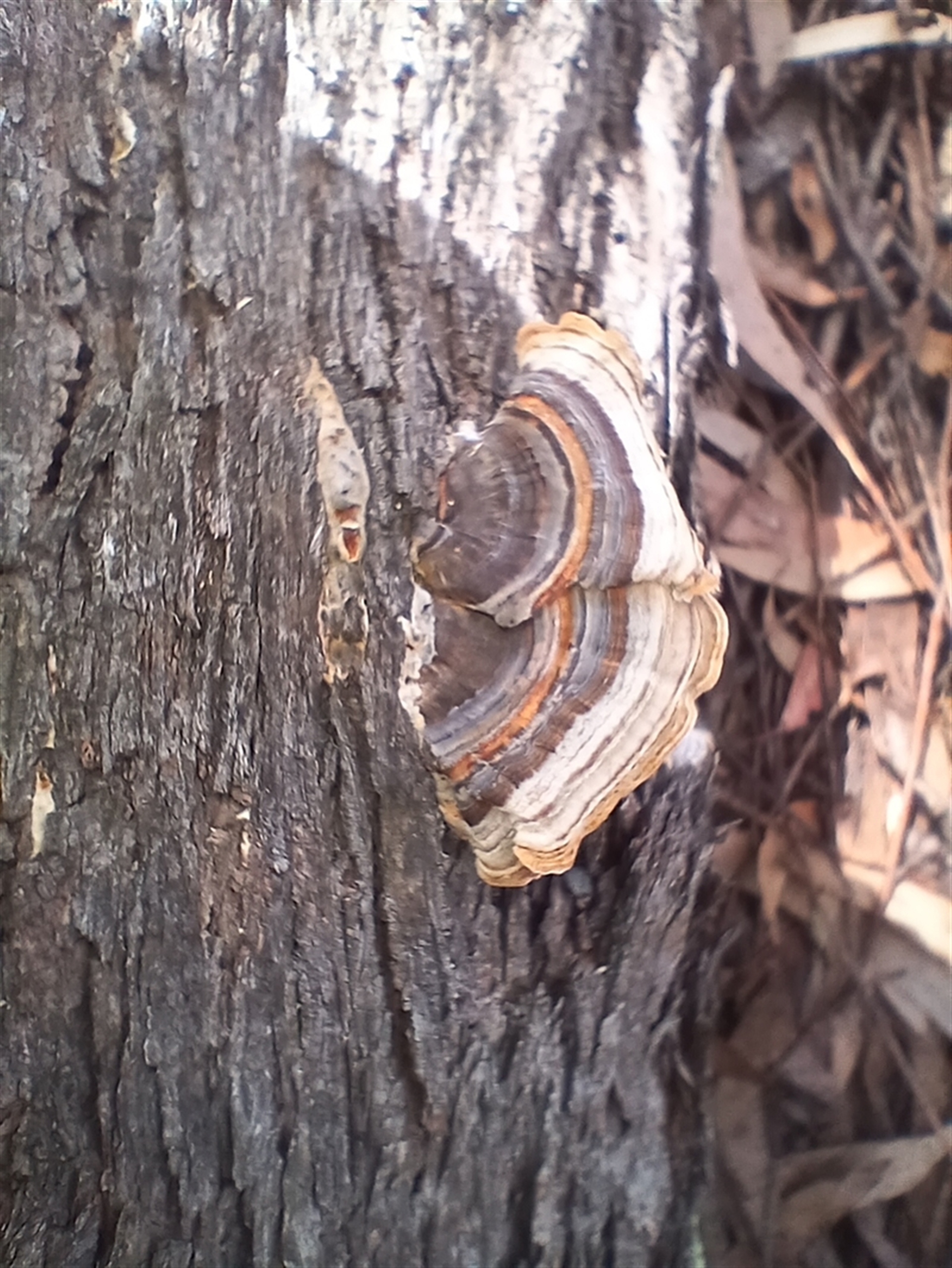 mahargiani South Coast NatureMapr Trametes versicolor Pored or somewhat maze-like on underside [bracket polypores] Shelf-like to hoof-like & usually on wood Fungi