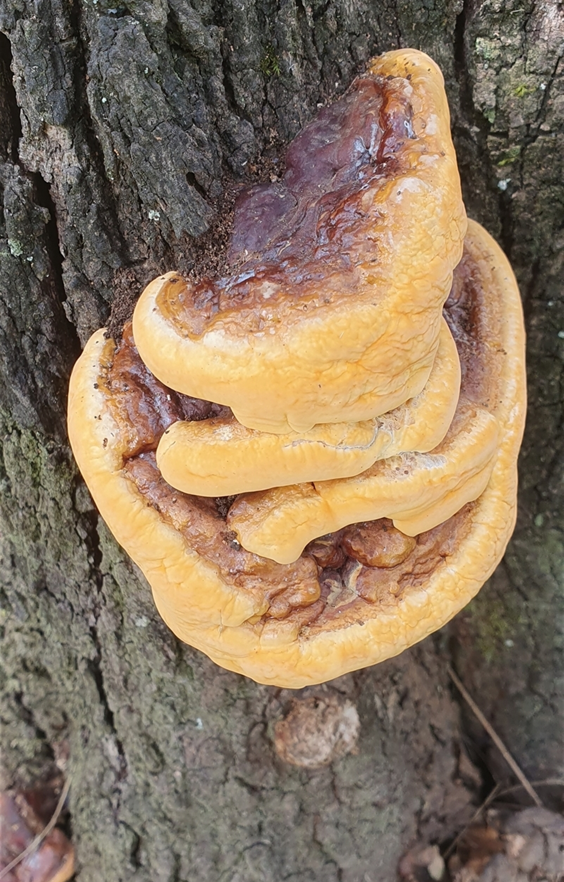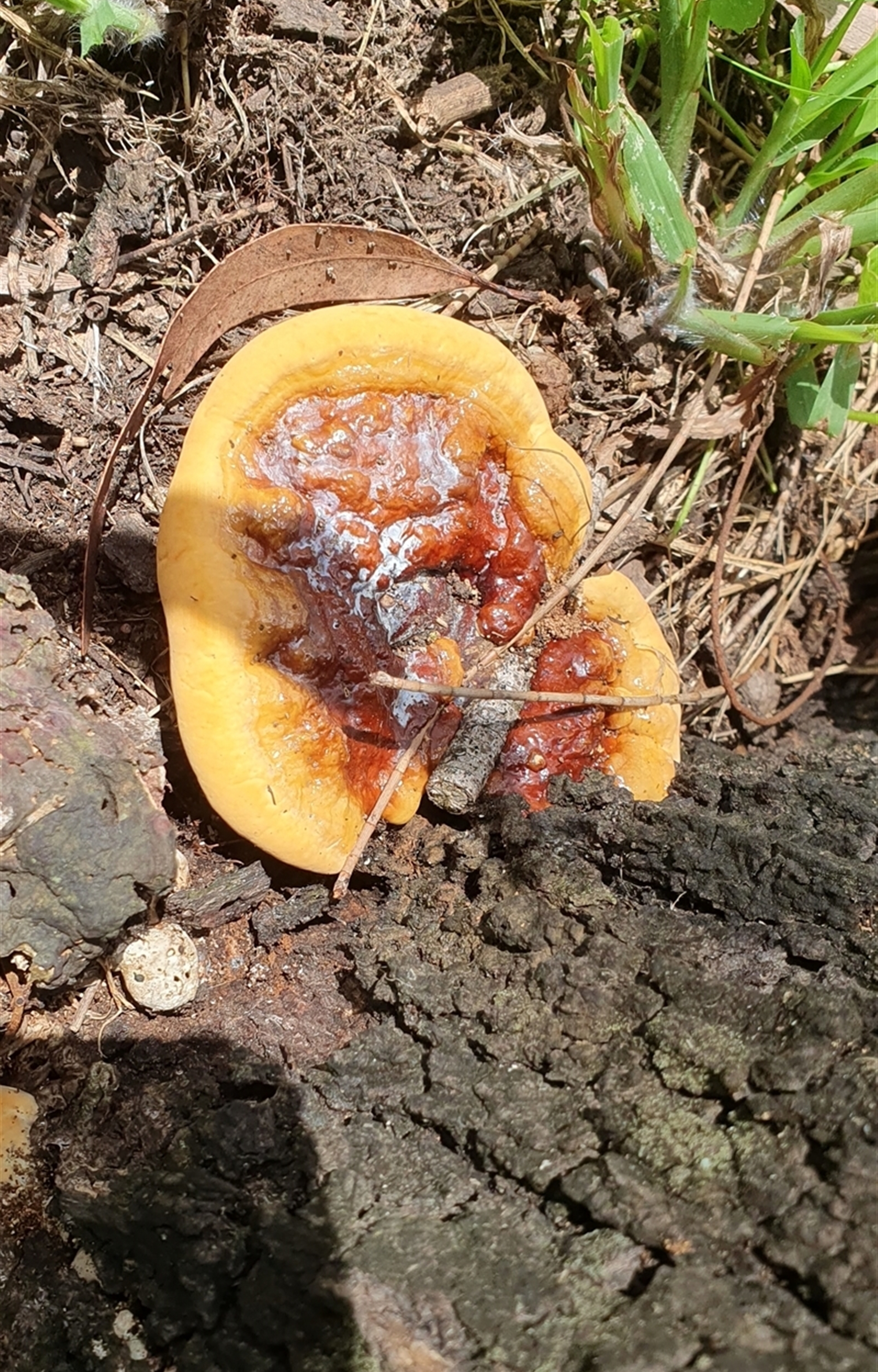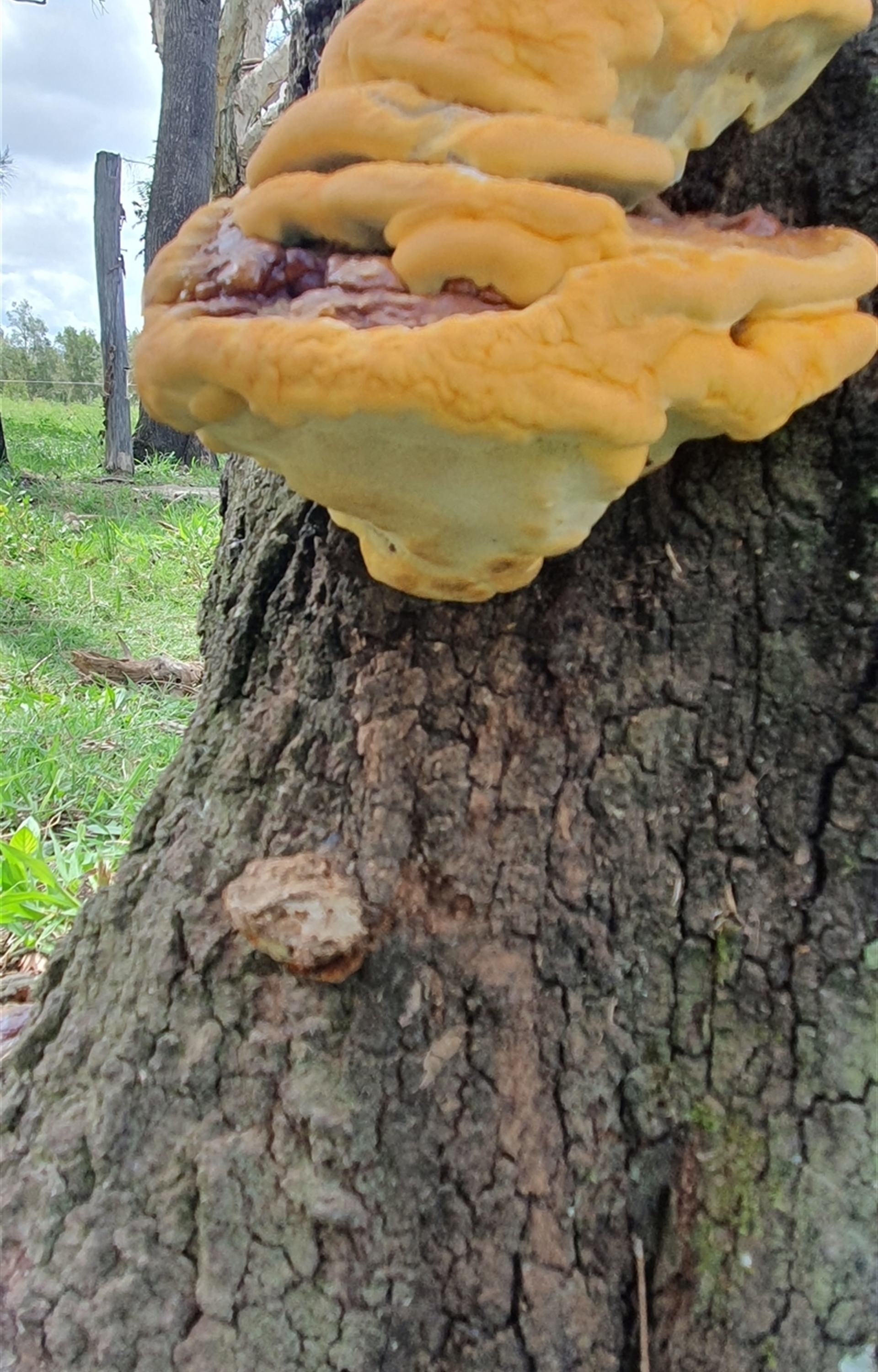 Topwood NatureMapr Pored or somewhat maze-like on underside [bracket polypores] Shelf-like to hoof-like & usually on wood Fungi zz Polypore (shelf/hoof-like)
