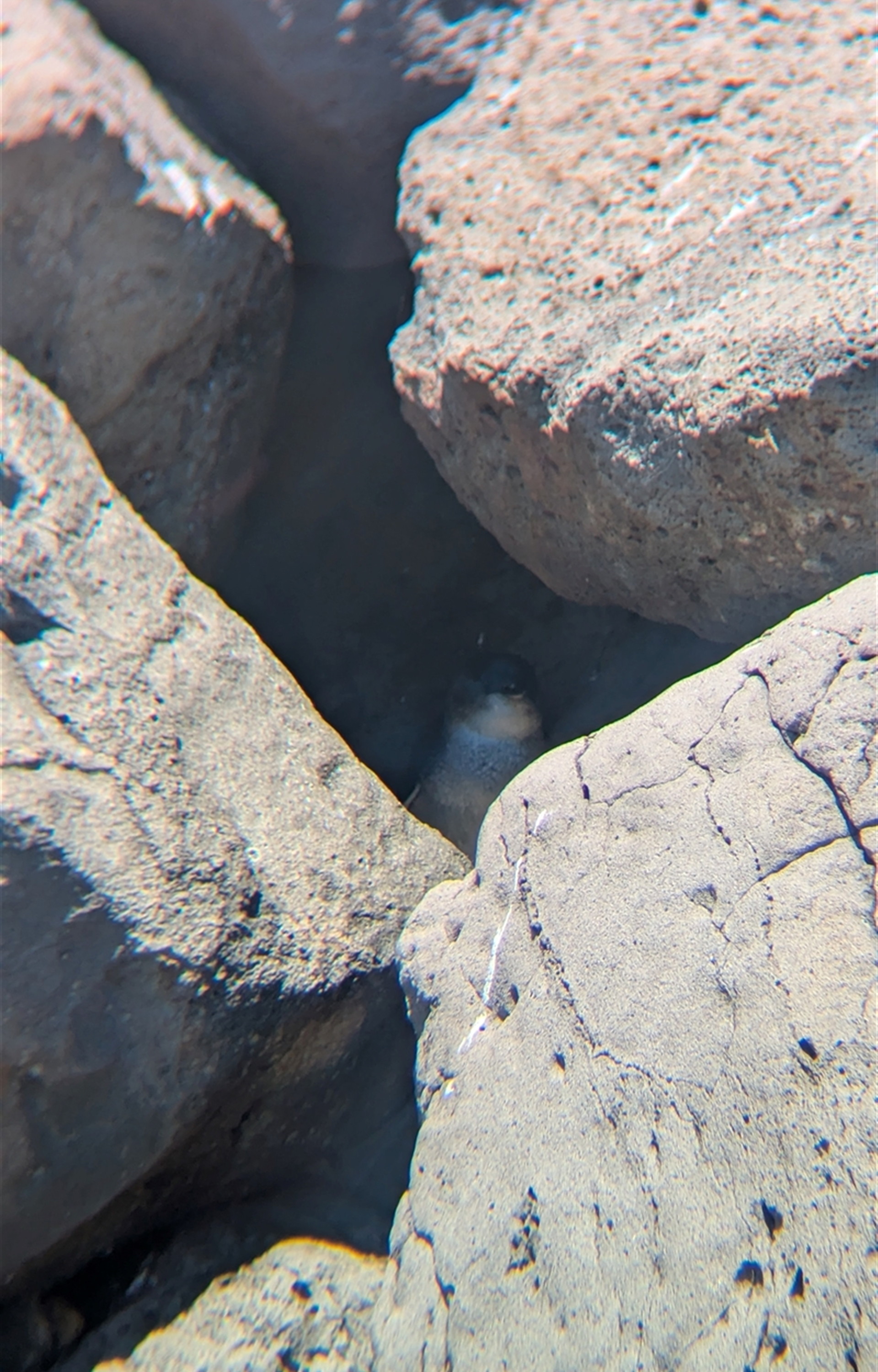 Couple of Little Penguins sheltering in the rocks of the sea wall