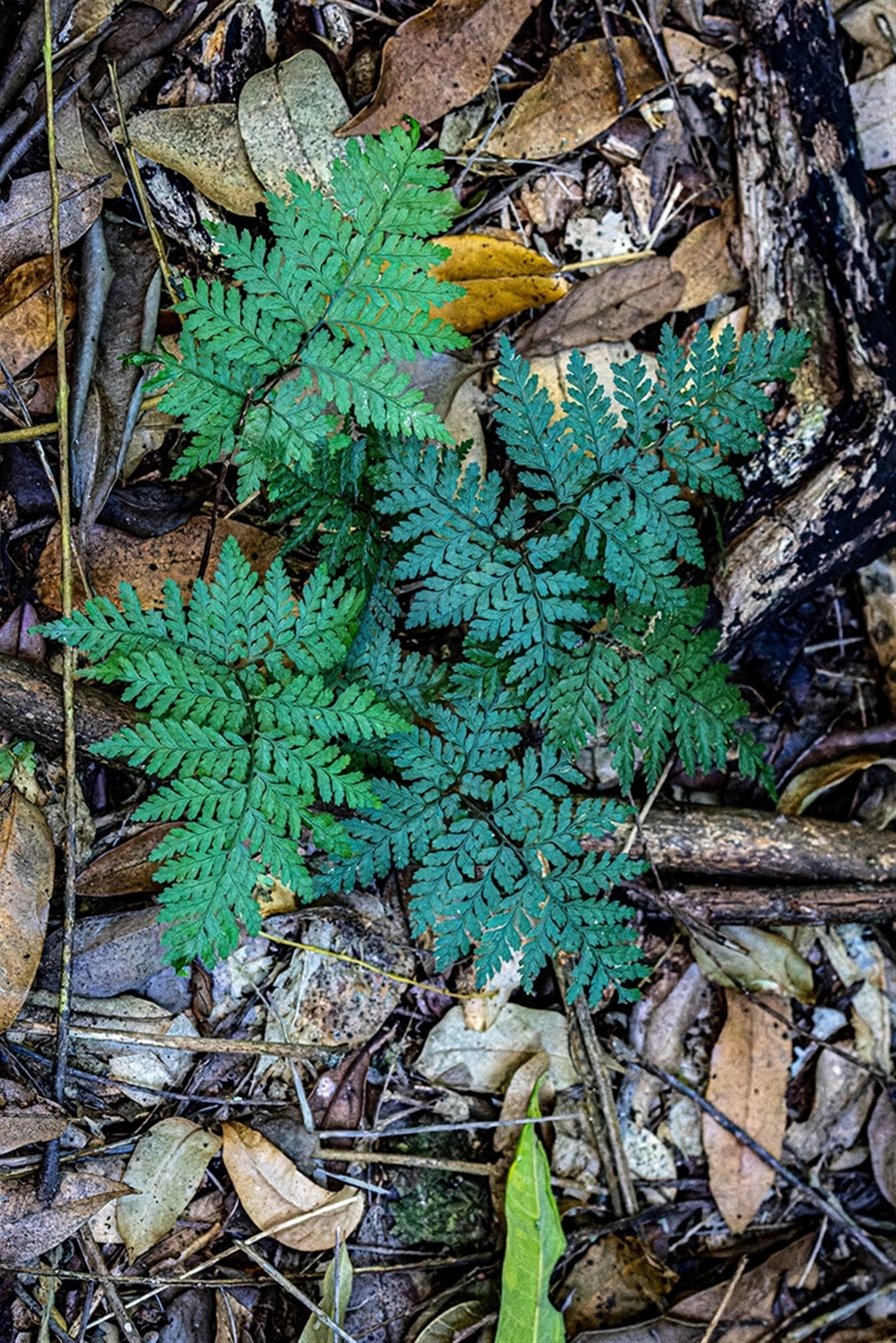 A clumping fern growing in deep shade in subtropical rainforest.