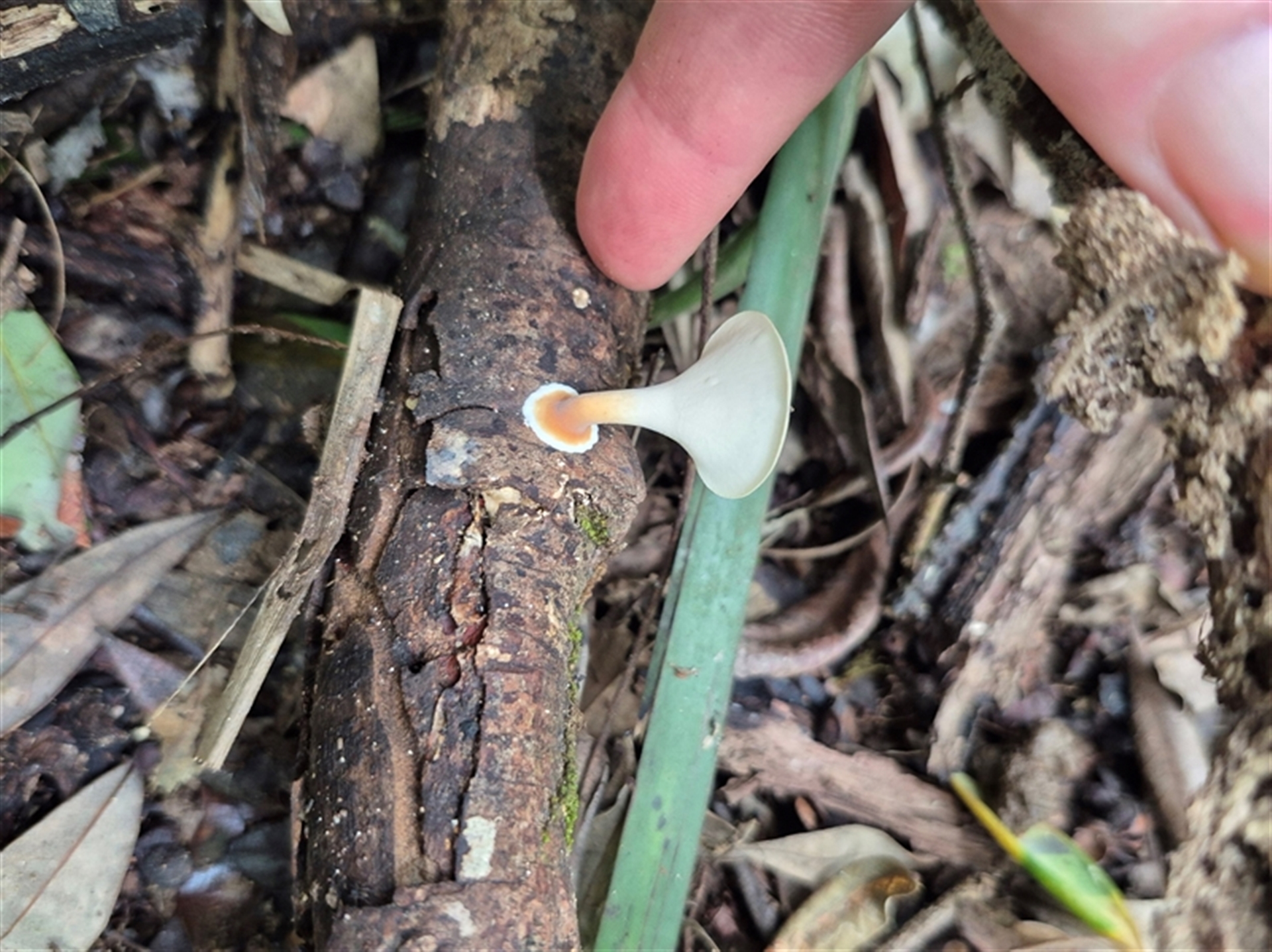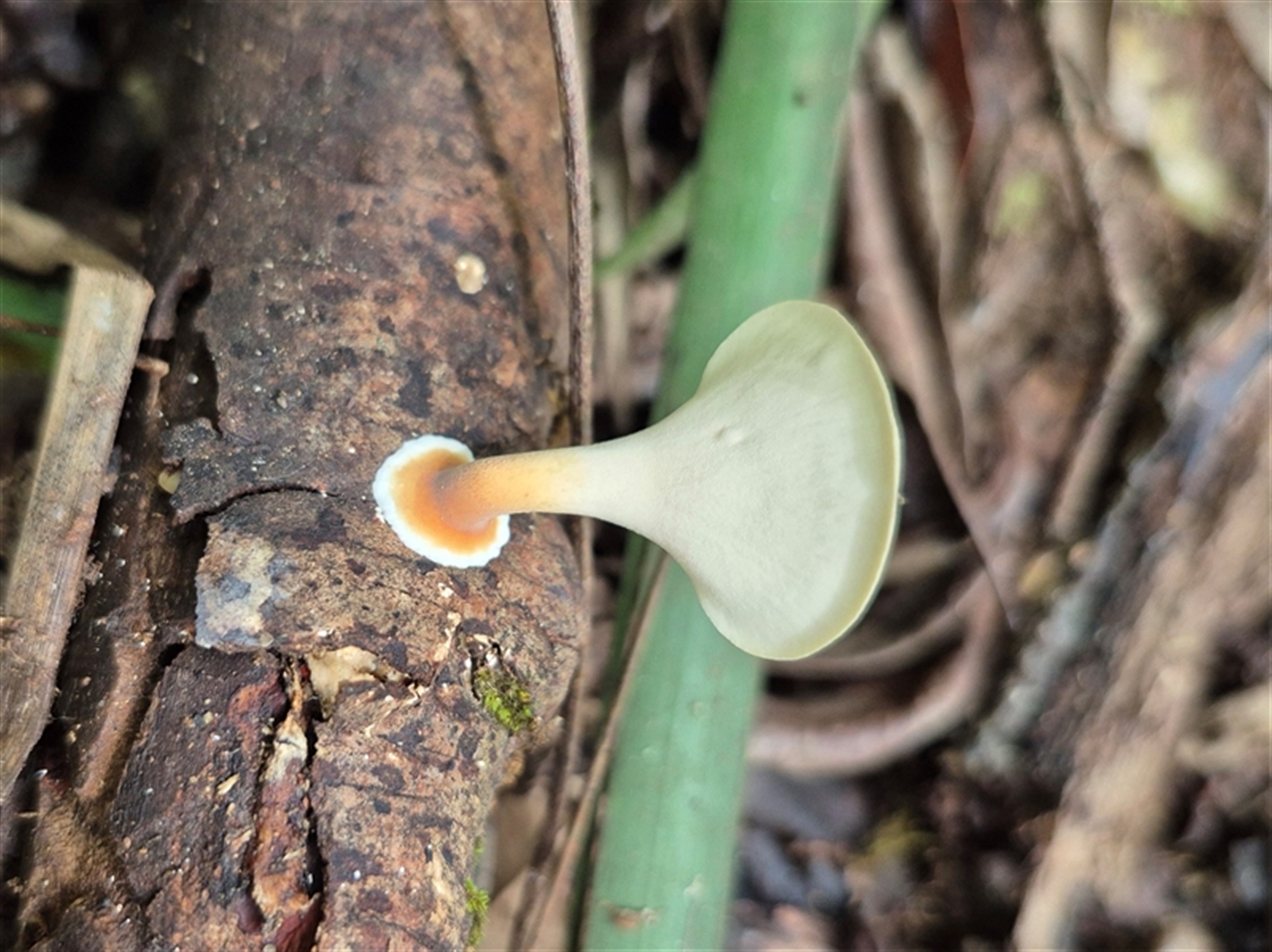 clarehoneydove NatureMapr Polypores - Non-fleshy texture, stems central or lateral Caps on stems; pores below caps [boletes & stemmed polypores] Fungi Microporus xanthopus