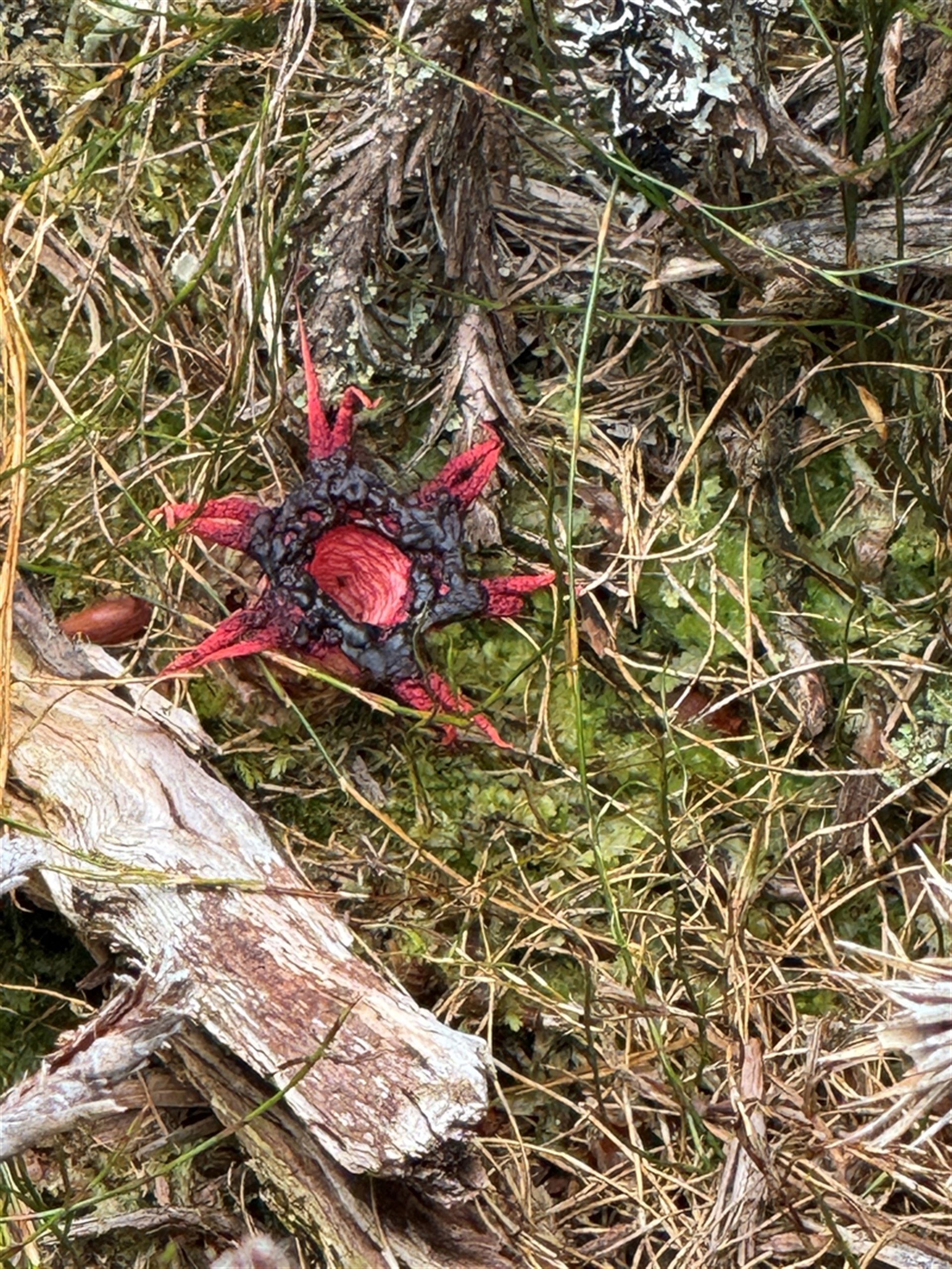 Aseroe rubra is an extraordinary fungus that emerges from an ‘egg,’ resembles a starfish and produces a foul smelling spore-containing brown substance that attracts flies and other insects, which involuntarily assist with spore dispersal. Recherche bay in Tasmania was the first place where this species was found and described.