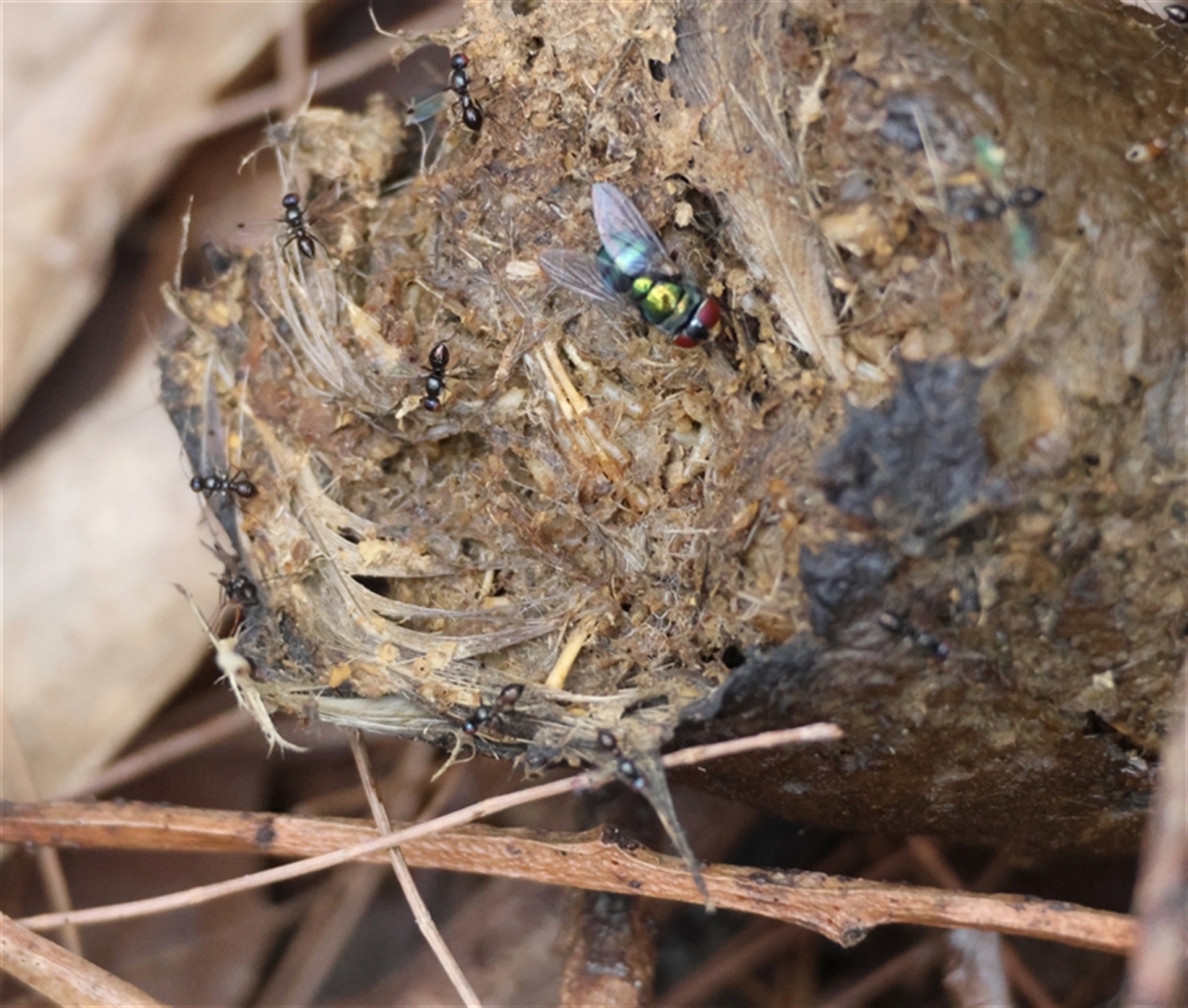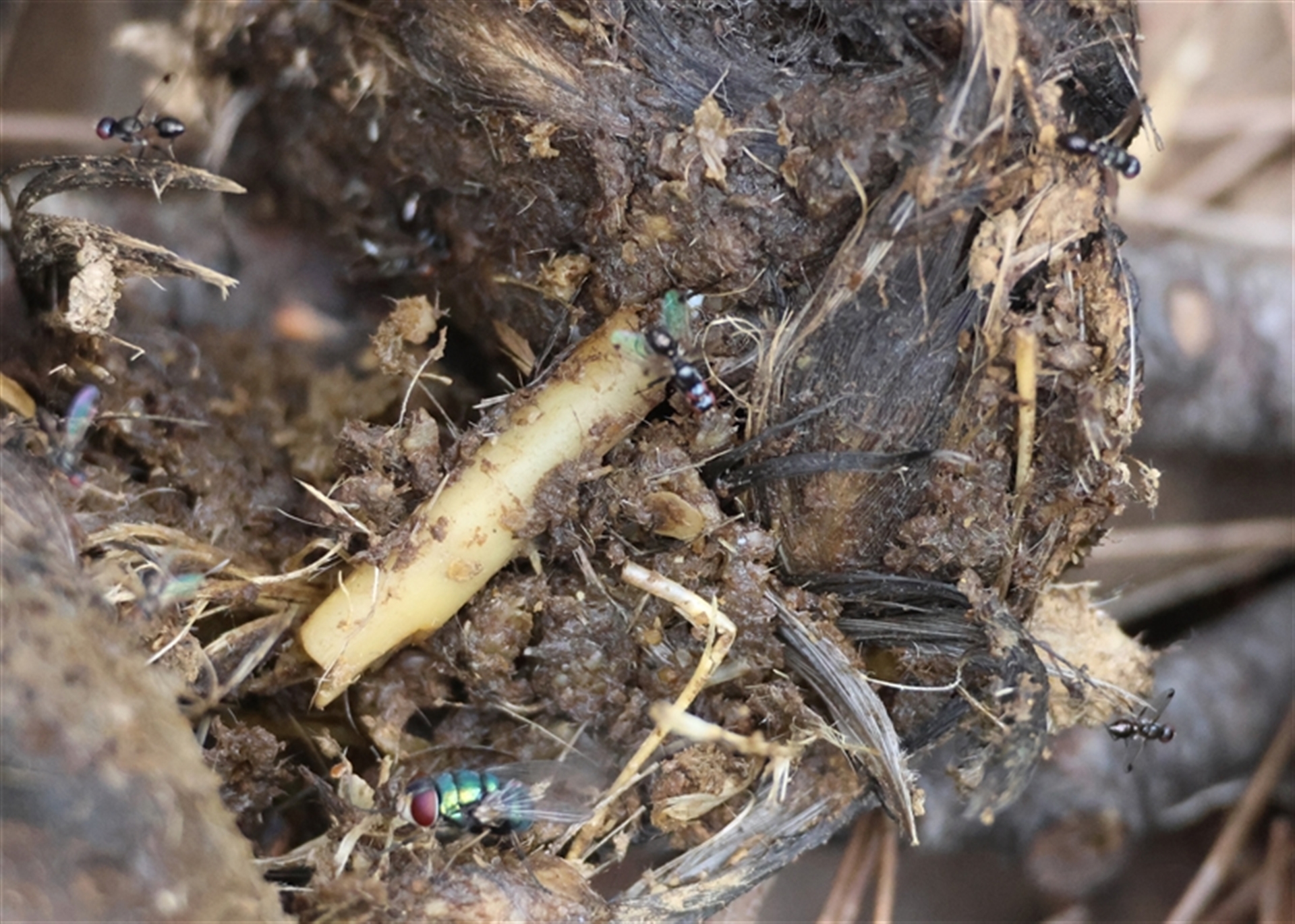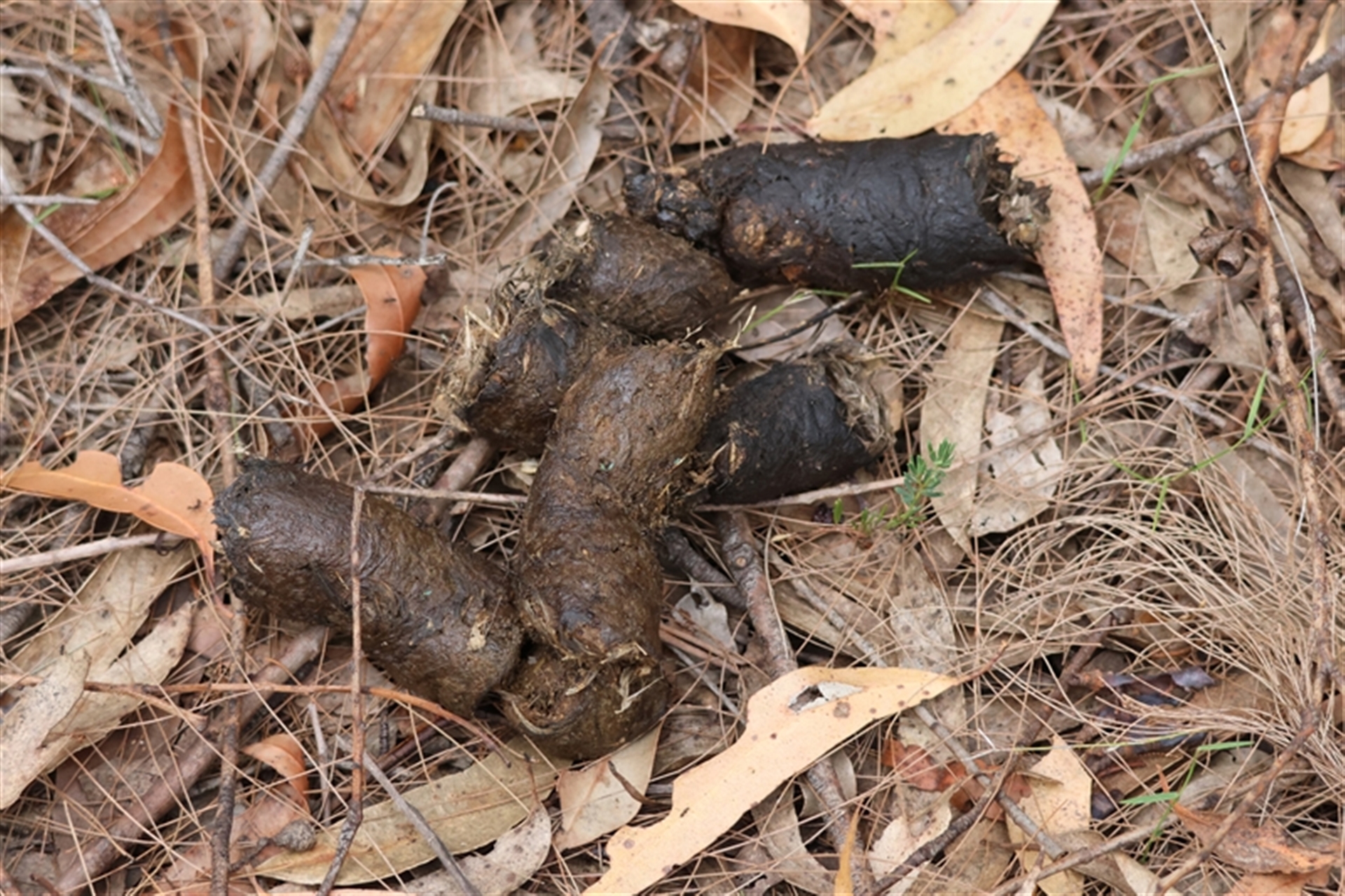 I found this huge, unwelcome, dog scat on our place, and noticed what I thought was vegetable matter (curved bark) - until I downloaded the photos, and discovered there was a mass of feathers, curved to fit the dog's digestive track. Sadly, I assume it was this collared dog (one of two) seen just hours earlier in the swamp, with a water bird in its mouth. No idea how many they have scared and hunted, with (presumably) their owners nearby. (angry face emoji!!). I don't expect the bird to be ID'd - just wanted to record.