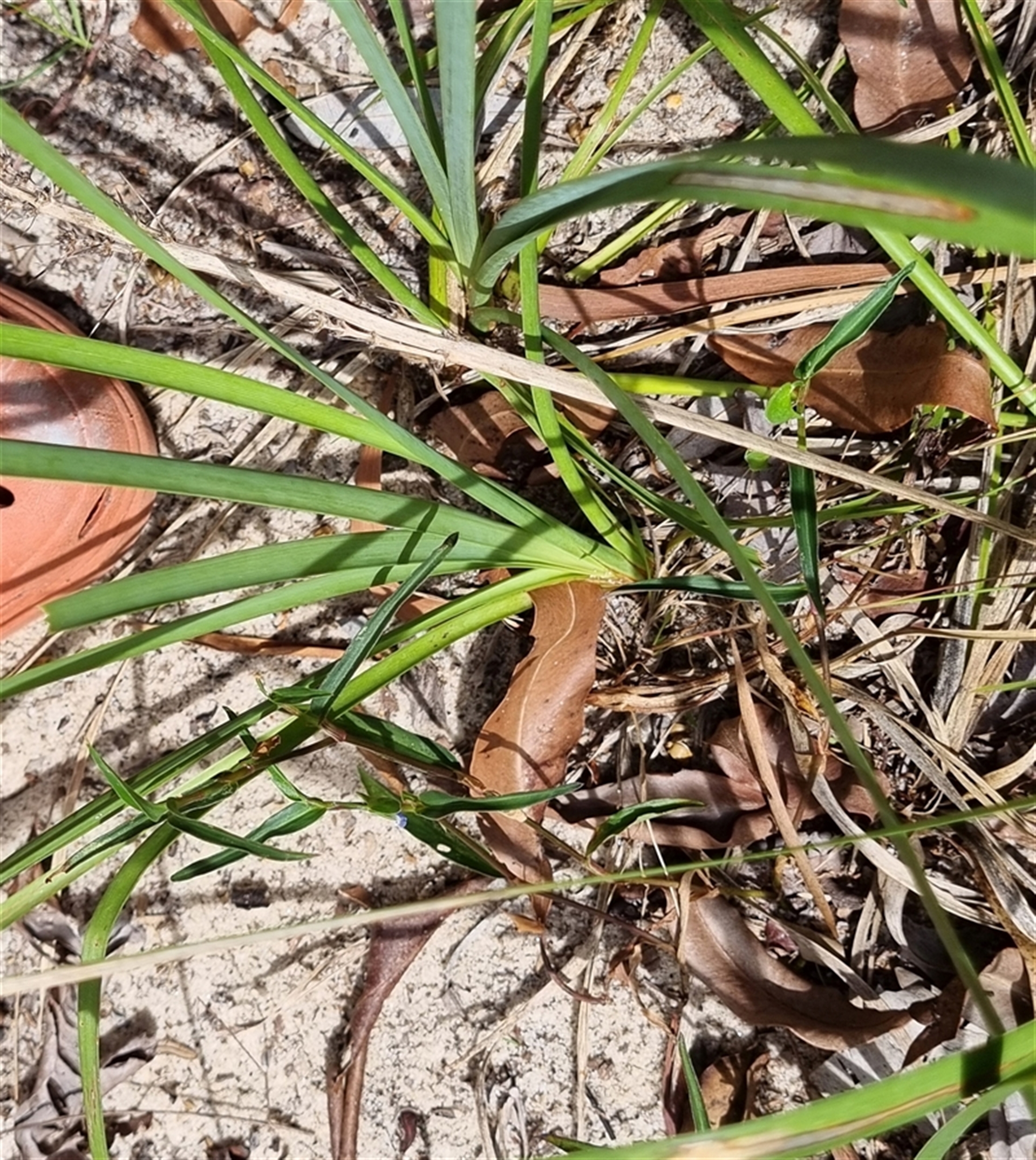 Looking into these photographs at full resolution, an old weathered, pale coloured, fruiting culm (infructescence) remains in amongst these leaves, which shows the diagnostic features of this species : _Lomandra_longifolia_ .