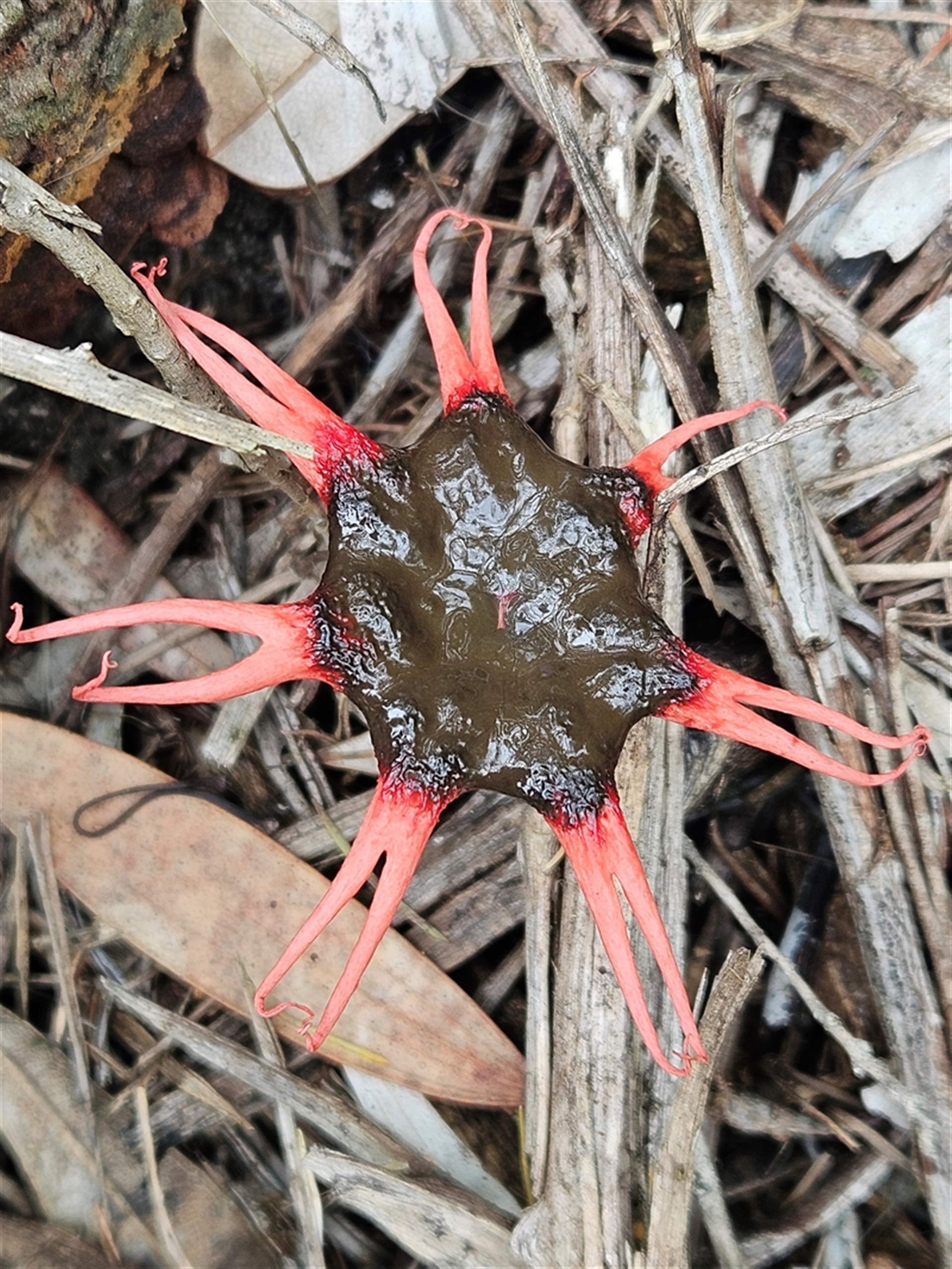 AaronClausen NatureMapr New South Wales North Coast Aseroe rubra Stinkhorns, radiating arms atop a stem Stinkhorns: with a smelly, brownish spore slime Fungi