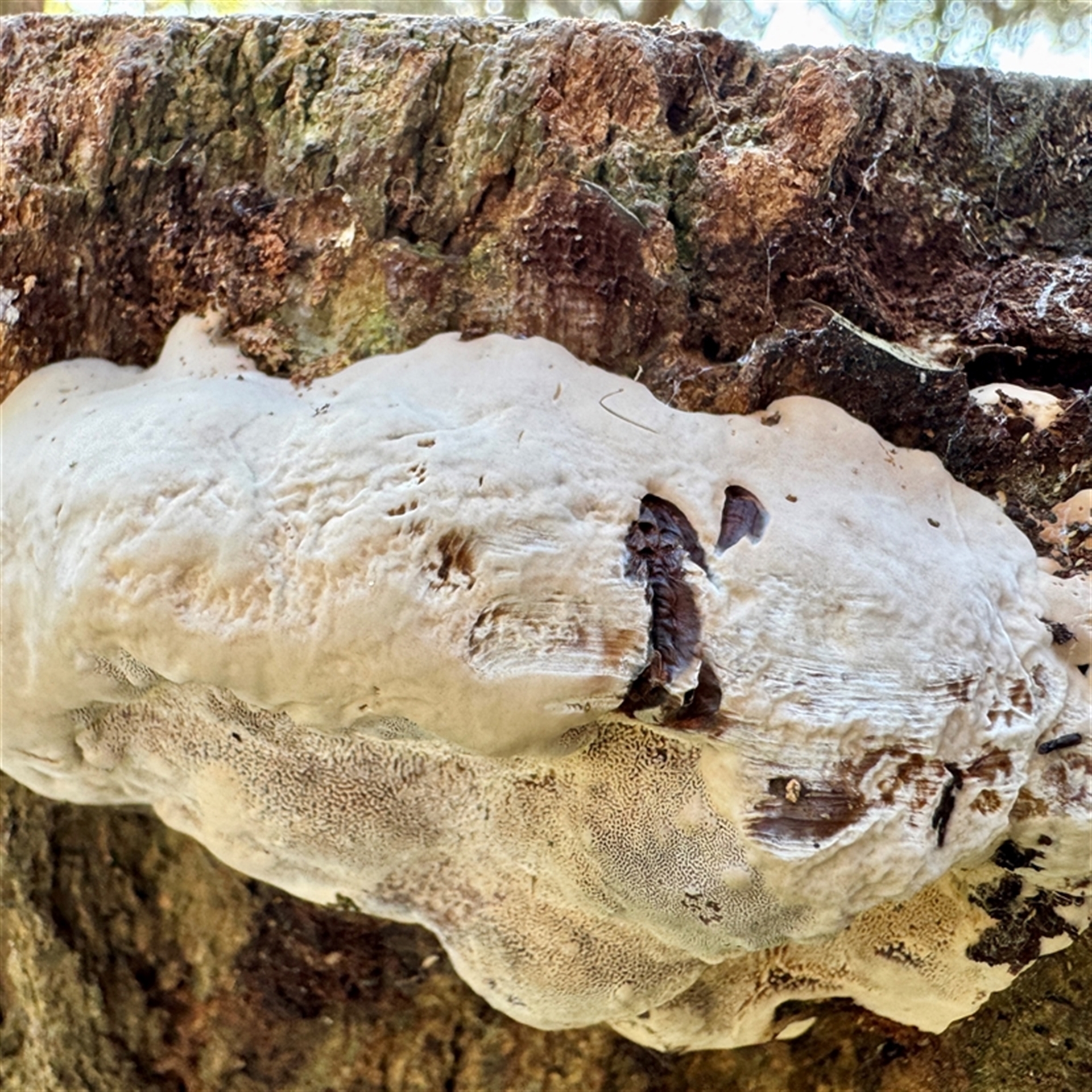 Hejor1 NatureMapr South Coast zz Polypore (shelf/hoof-like) Pored or somewhat maze-like on underside [bracket polypores] Shelf-like to hoof-like & usually on wood Fungi