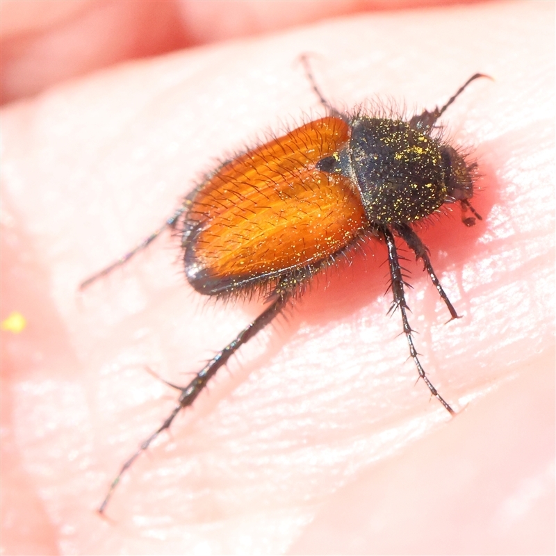 Found on flowers in the wetter parts of the ACT, e.g. Brindabella Range. Resembles Phyllotocus kingii in having the elytra reddish black and covered in setae (hairs). However, P. erythropterus has the extreme apex of the elytra black, and most of the hairs on the elytra are short and pale.