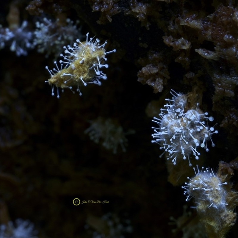 This parasite looks to the naked eye as a kind of fluff, that on closer inspection is made up of lots of small white balls carrying stalks with a white button at each end.