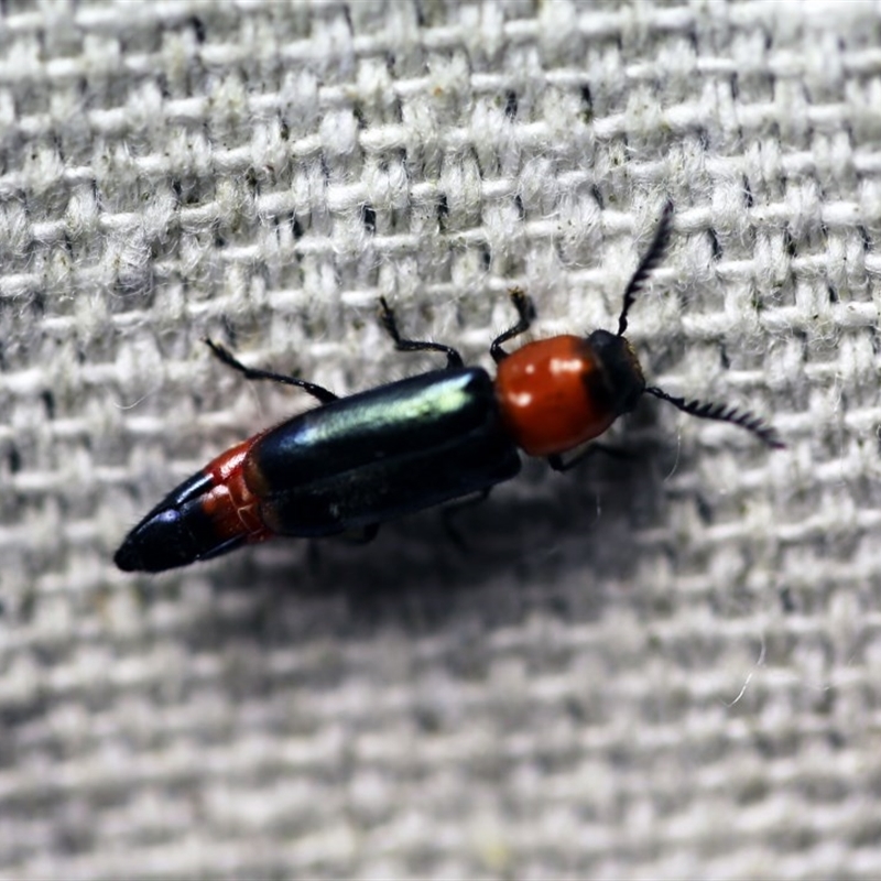 Family Cleridae. These are predators of wood-boring beetles. With their blue and red colours and shortened elytra, these beetles resemble certain Soft-winged flower beetles (Melyridae) of the genera Balanophorus and Carphurus. However, Tenerus are more cylindrical and have relatively longer elytra and a different head.