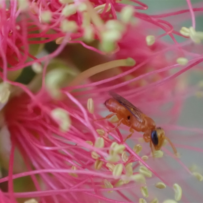 Currently listed as belonging to Rhodohylaeus but discovery of the male indicates that the species belongs in Prosopisteron. Usually found visiting mistletoe (Amyema).