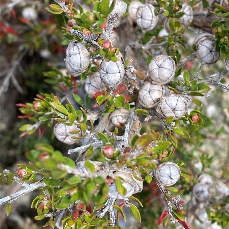 Leptospermum novae-angliae is a species of shrub that is endemic to eastern Australia. It has elliptical leaves that are usually crowded, single white flowers on short shoots and fruit that remain on the plant until it dies. It usually grows in rocky places.